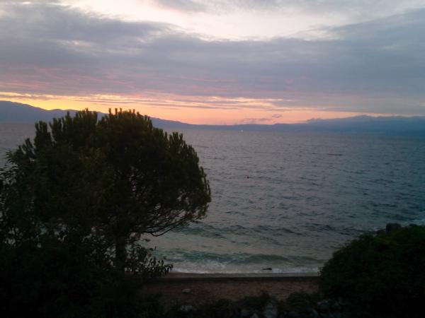 Vi var der i ti dage, hvilket varede som én dag. Lejligheden var smuk og veludstyret, vi savnede ikke noget. En butik og et bageri i nærheden, man kan parkere bilen og glemme alt om det. Jeg kan virkelig godt lide, at stedet er roligt, romantisk og uden støj. Et kloster i nærheden... man behøver ikke engang et ur, man tæller bare, hvor mange gange det ringer om morgenen. Svømning på hovedstranden, pænt arrangeret, men vi havde en lille hund, og de var i "Uhilič-bugten" hele tiden, lidt væk fra folkemængderne - men næsten alene (stranden er stenet, skyggefuld, og havet er varmt). Gåture ved havet, langs snoede gader... eller i naturen - blandt fyrretræerne ved havet eller gennem olivenlunde. Fru Mandica sagde, at vi på den første dag skulle føle os hjemme... og det indtryk fik vi virkelig. Hun bagte endda en frugttærte til os og et glas figenmarmelade til at tage med hjem. Tak, det var en vidunderlig ferie.