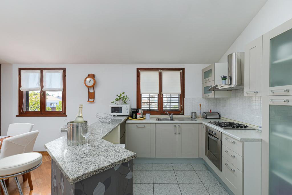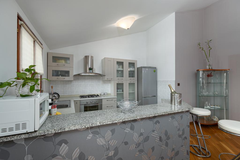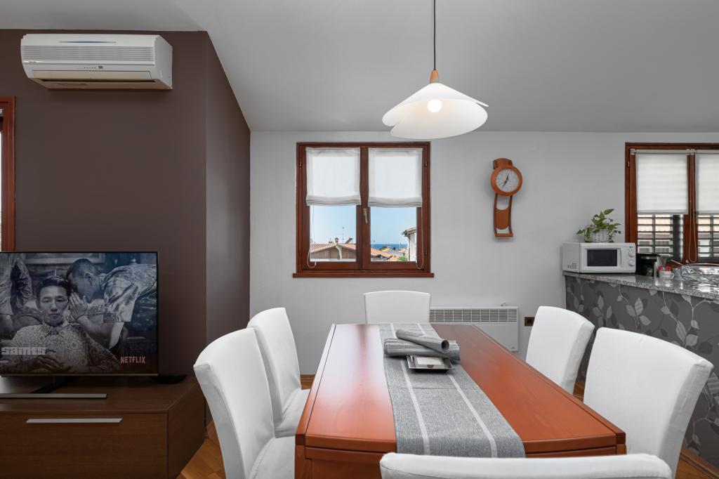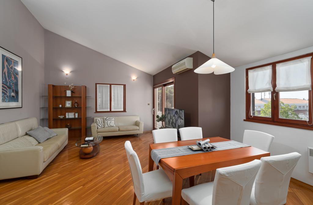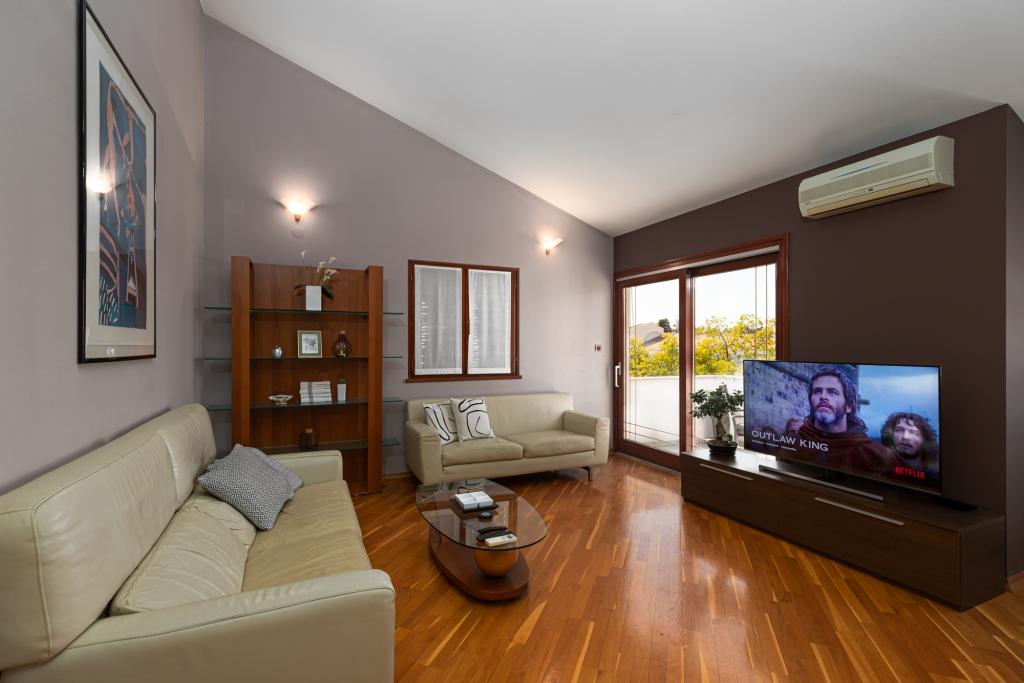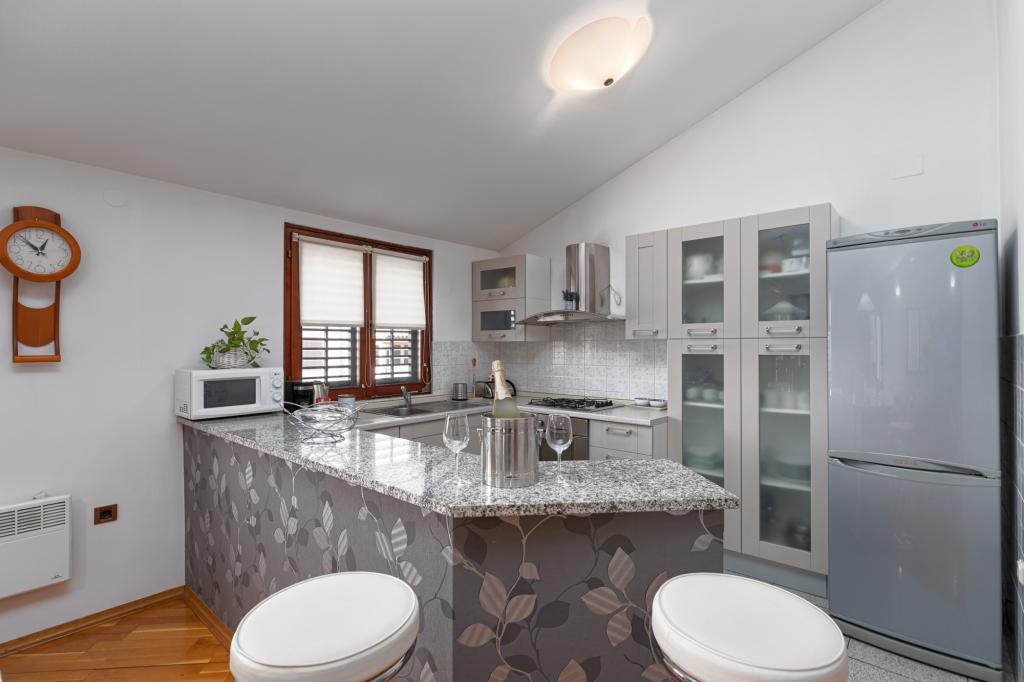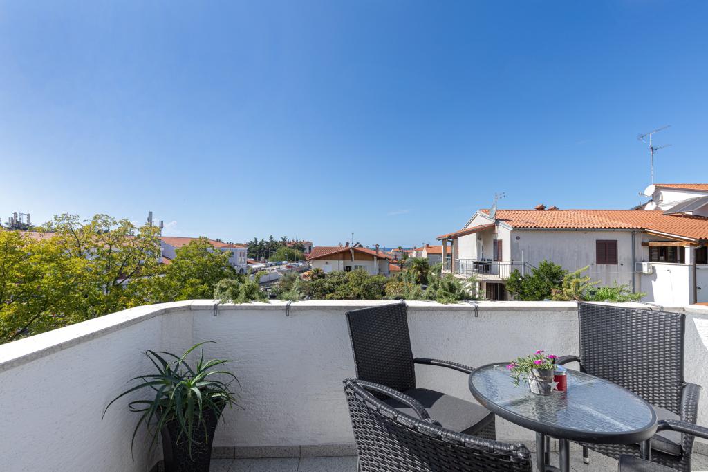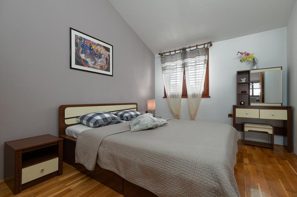 House Biba ligger i centrum af Poreč. Det er 400 m væk fra den gamle bydel. Den nærmeste strand for svømmere med sport og interessante aktiviteter er 500 m væk. Foran huset i gården er der en parkeringsplads. Huset består af to pænt møblerede værelser og en rummelig stue og balkon med udsigt over havet. I nærheden er der et bageri, supermarked, cykeludlejning, caféer og restauranter.