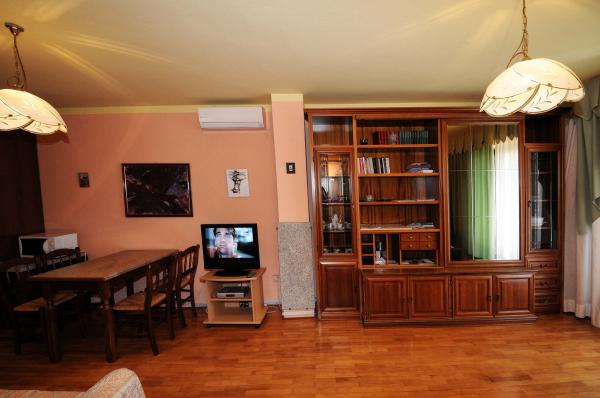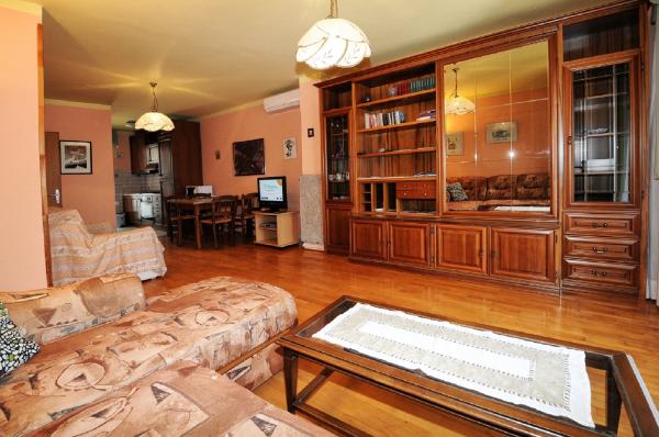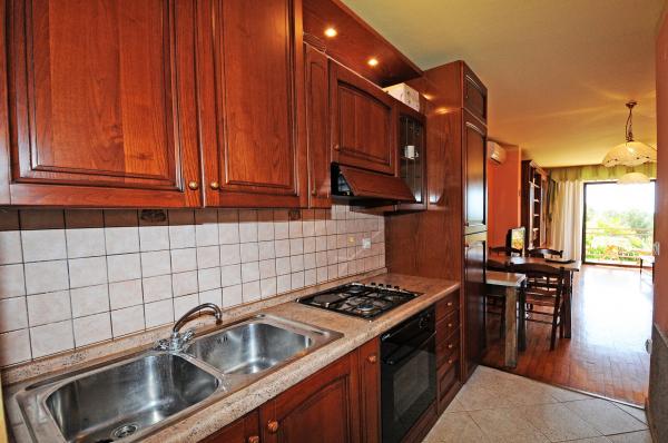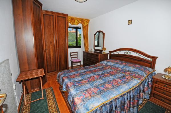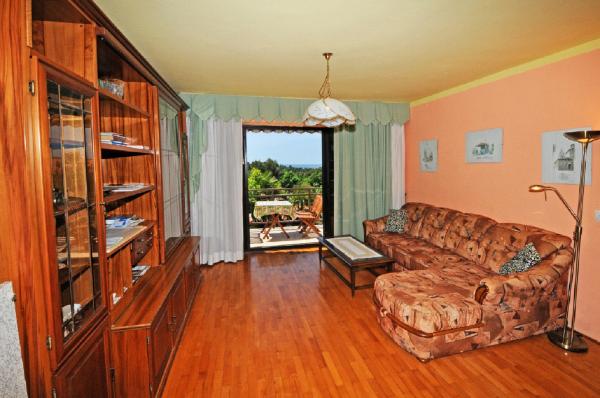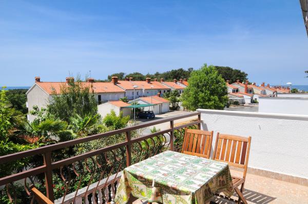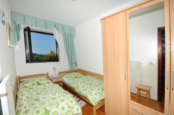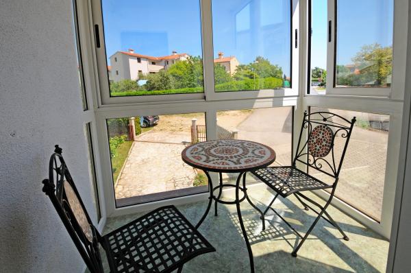Lejligheden er beliggende på første sal i en bygning omgivet af grønne områder i en rolig elite del af Porec, over sportscenter hotel Diamant. Den komfortabelt møbleret lejlighed består af en rummelig stue, større og mindre soveværelse, terrasse, lukket altan, køkken, badeværelse med bruser og toilet, samt en hall. Fra stuen, terrasse og mindre soveværelse har en smuk udsigt over havet. Resten af lejlighederne står sin egen smukt anlagte have med frugttræer og blomster i haven er sin egen bevægelig hegn beskyttet parkeringsplads til en bil. Det tager kun en ti minutters gåtur gennem skyggen af fyrretræer at komme til Blå Flag strande. Der er også et center for vandsport (faldskærm, banan, rør etc.). I en afstand af kun 2 km fra lejlighederne for nylig åbnet et stort vandland Aquacolors Porec.