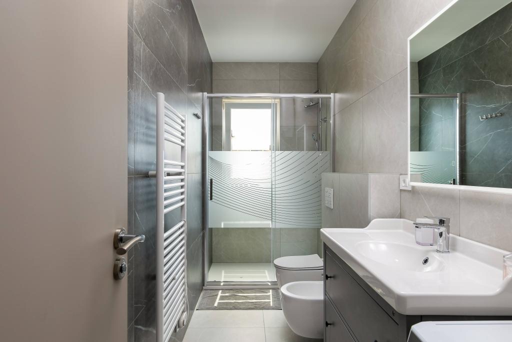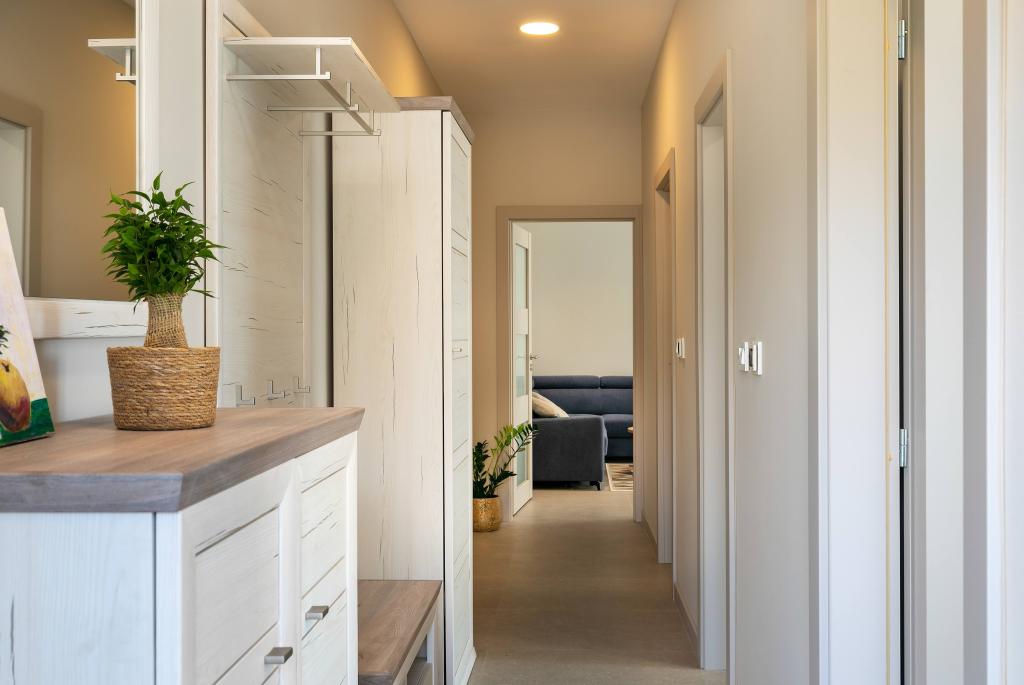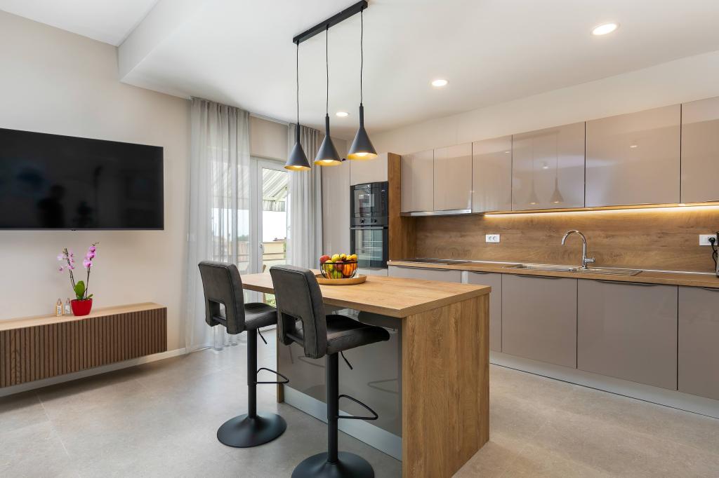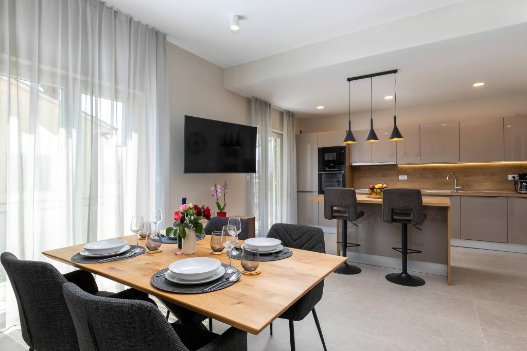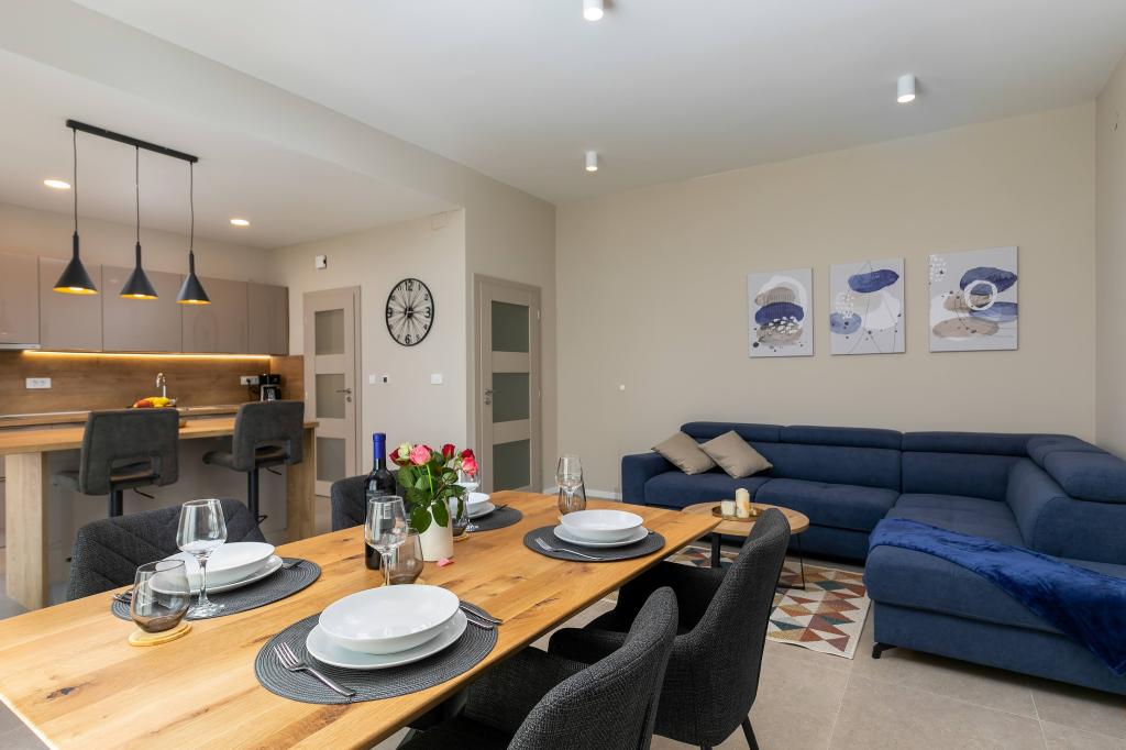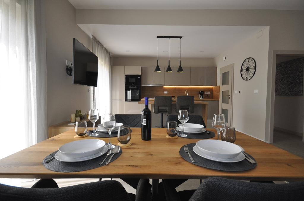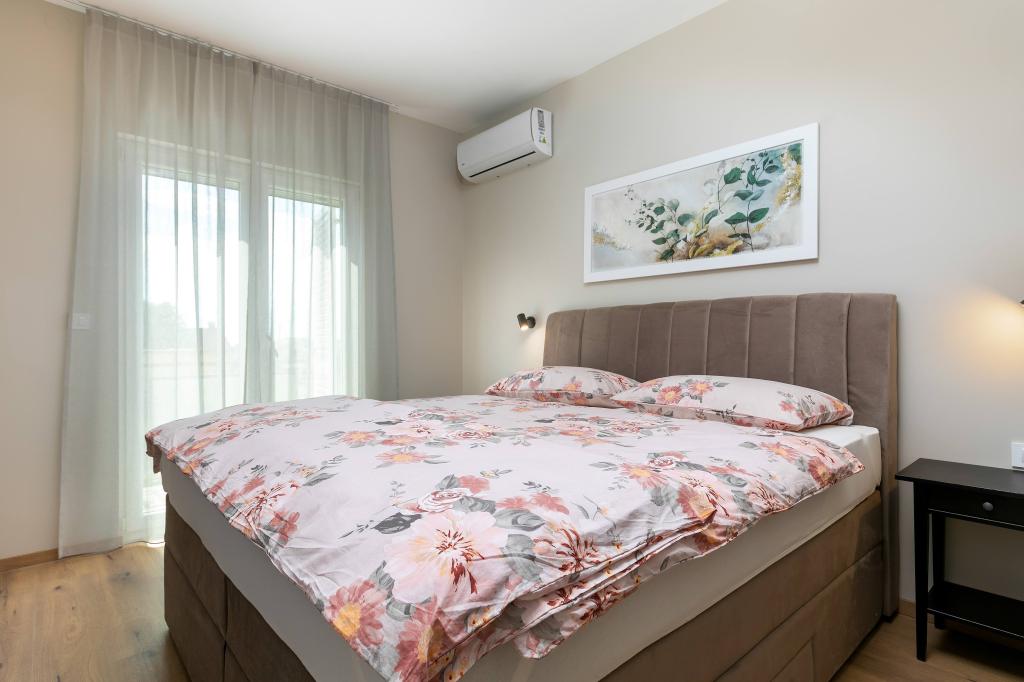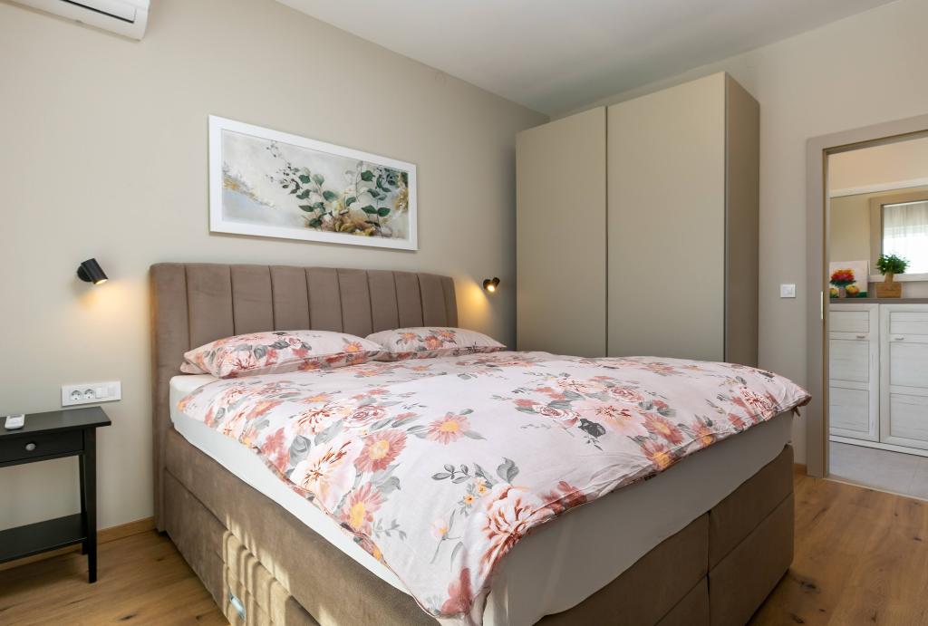 Poreč, Lejlighed Nona Ana, nyrenoveret lejlighed med et soveværelse, badeværelse, rummelig stue med spisestue og køkken samt balkon. Køkkenet er udstyret med en opvaskemaskine, en mikrobølgeovn, en ovn, en filterkaffemaskine og en espressomaskine, en kedel og en brødrister. Lejligheden har også et TV-SAT, Wi-Fi, en hårtørrer, et strygejern til at stryge tøj og en vaskemaskine på badeværelset. Lejligheden opvarmes og afkøles via et inverter klimaanlæg placeret i stuen og soveværelset. Lejligheden er beliggende på 1. sal. Parkeringsplads til rådighed i gården. Afstanden fra havet er kun 900m-1000m, afstanden fra markedet 500m, restauranten 600m, afstanden fra centrum 2500m.
