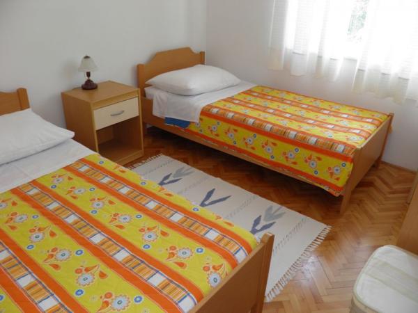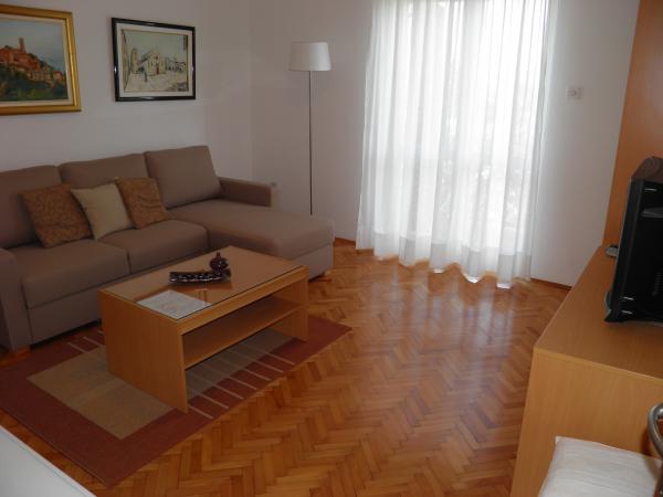 Lejligheder i privat hus nær havet og centrum. Én app. er beliggende på første sal og har 2 soveværelser, en stue med en ekstra seng, et køkken, et badeværelse og en terrasse. En anden app. er beliggende i stueetagen og har 2 soveværelser, køkken, badeværelse og terrasse med have. Parkering er foran huset. Disse lejligheder ligger kun få skridt fra den populære Brulo strand i Poreč, hvorfor de er meget efterspurgte. Vent ikke for længe med at reservere denne fantastiske bolig.