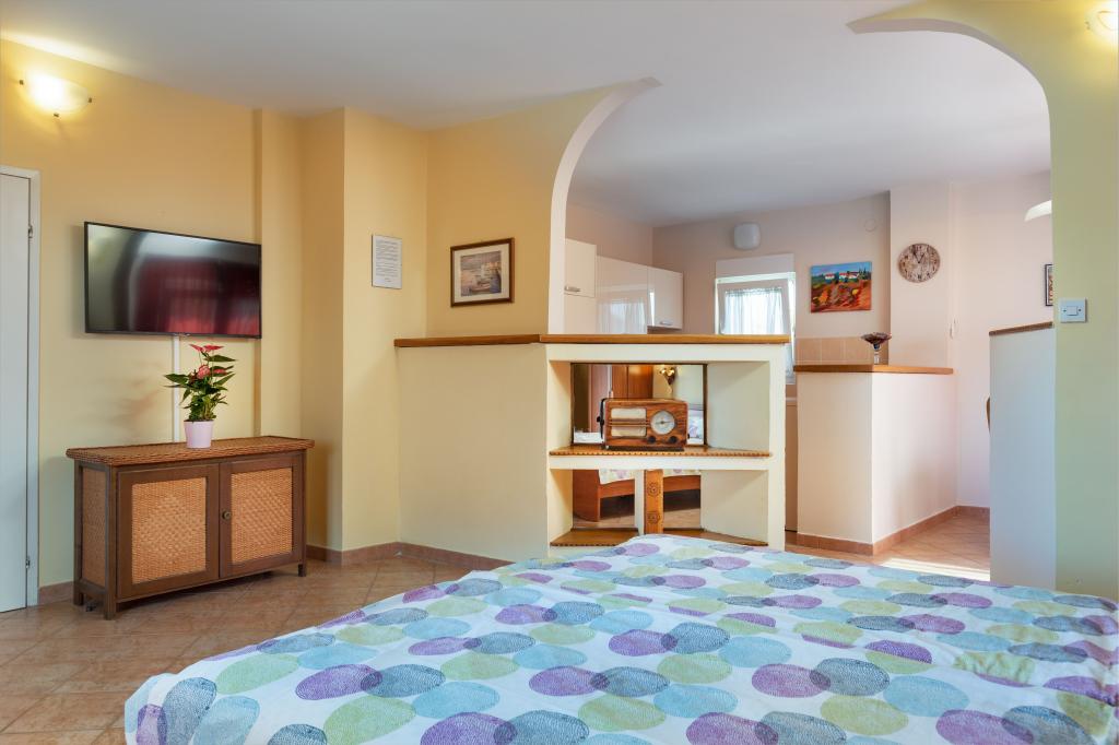 Lejlighederne er pænt indrettede og ligger 2 minutter i bil fra havet og byen. Alle lejligheder har en stor terrasse, nogle med havudsigt. Parkering til biler er i den indhegnede gård.