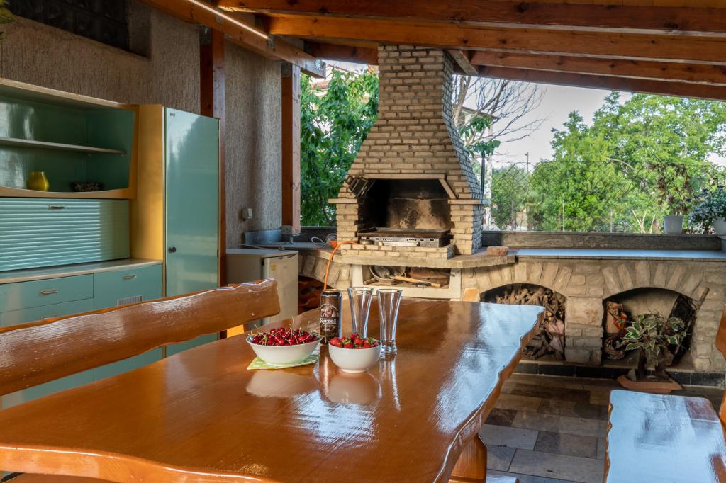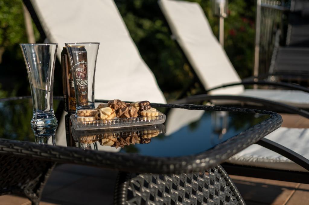 velkommen med hjemmelavet vin og typiske istriske fritters (sød kage)