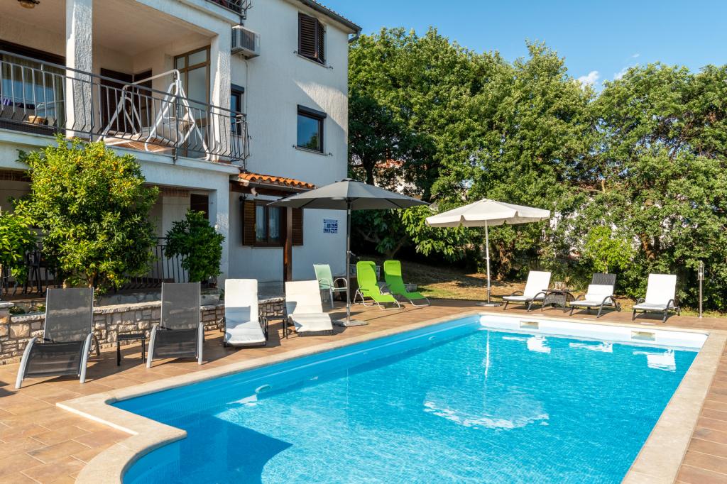 Velkommen til lejligheder Villa Verde. Vi er beliggende i en rolig landsby 10 minutters kørsel fra centrum af Porec. Nyd den friske luft og fuglenes kvidring, mens du slapper af i 32m2 poolen, omgivet af århundreder gamle egetræer på et isoleret 3500m2 plot. Lejlighederne er fuldt udstyret til et afslappende ophold i et naturligt miljø Villa Verde lejligheder er kun beregnet til voksne. Vi tilbyder dig muligheden for at bruge grillen med alt dens udstyr (jeg kan hjælpe dig med vores hjemmelavede træ og indfødte istriske vin og dessert). Vi tilbyder vores kære gæster hjemmelavede æg af vores popcorn, som vores gæster er glade for at fodre, og de beløn dem med hjemmelavede æg. Jeg håber, du beslutter dig for at blive i vores lejligheder og nyde den afslappende atmosfære i en typisk istrisk landsby.