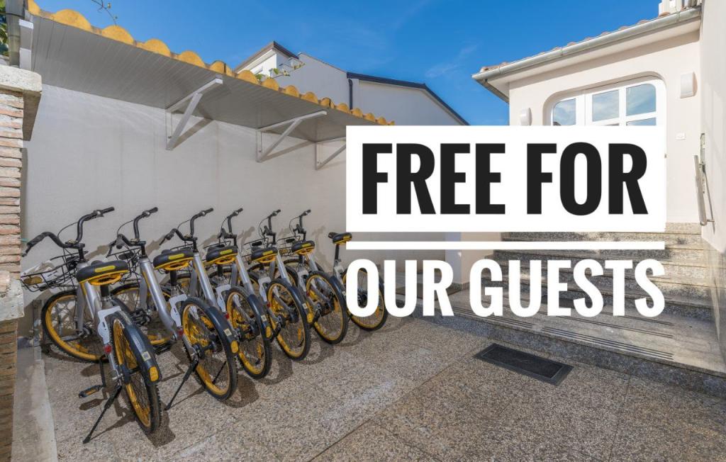 Vores gratis cykler står til din rådighed, så du kan nå stranden eller byens centrum på få minutter og nyde de maleriske lokale stier undervejs. Vi tilbyder muligheden for at leje en båd med eller uden skipper, samt organiserede bådture, dykning, romantiske solnedgange, delfinsejlads osv. Derudover har alle vores gæster gratis parkering lige ved siden af anlægget, så du ikke behøver at bekymre dig om din bil under hele dit ophold.