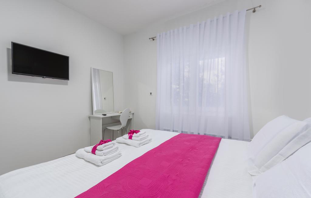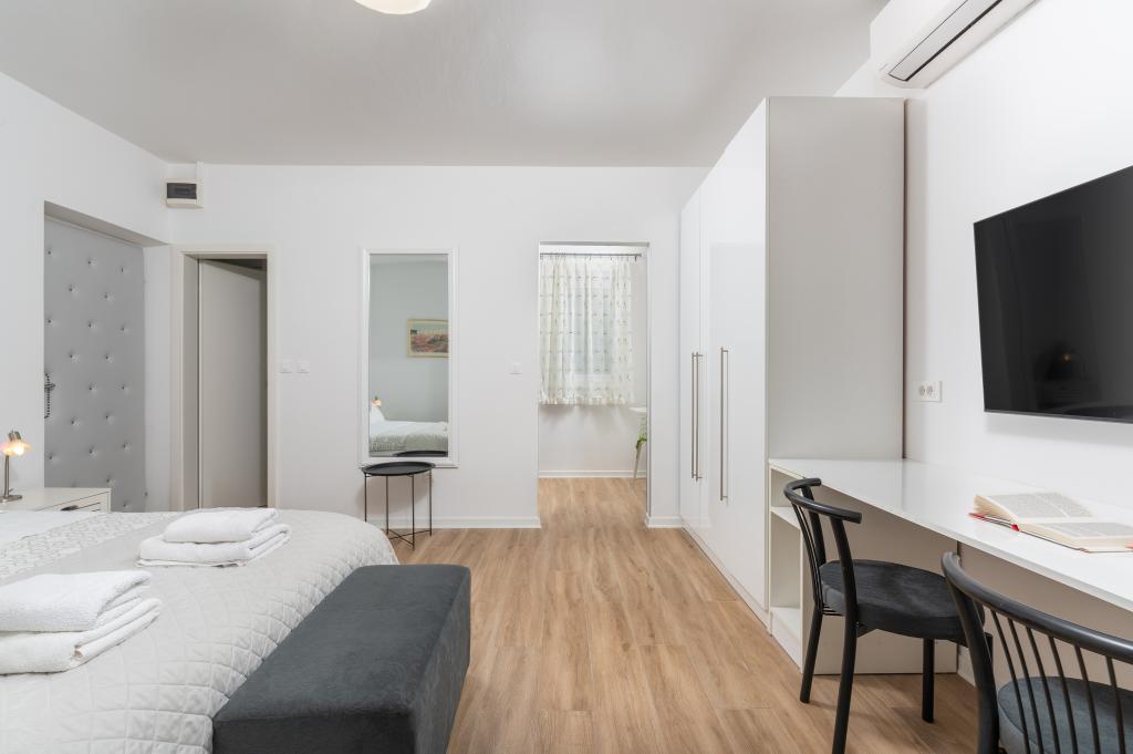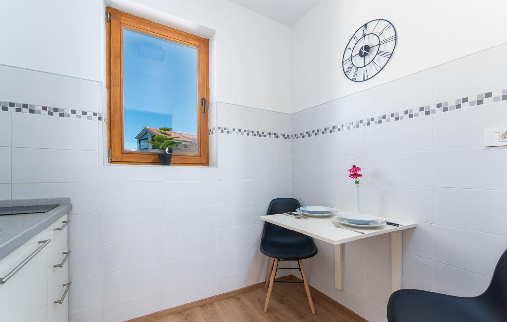 Vores lejligheder ligger i et smukt og roligt boligområde, der tilbyder en perfekt tilflugt fra sommerens travlhed, men alligevel tæt på alt. En afslappet gåtur på 10-15 minutter bringer dig til den smukke Borik-strand eller Porečs livlige historiske centrum. Et stort supermarked ligger kun 4 minutters gang væk, hvilket er meget bekvemt for familier.