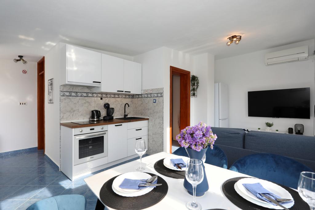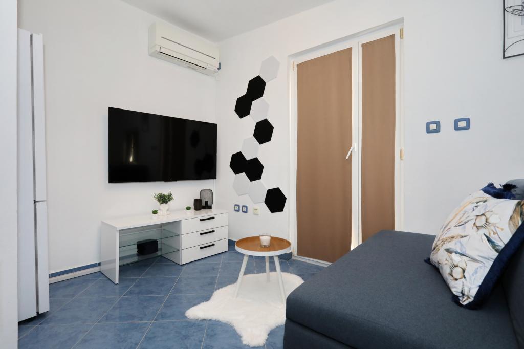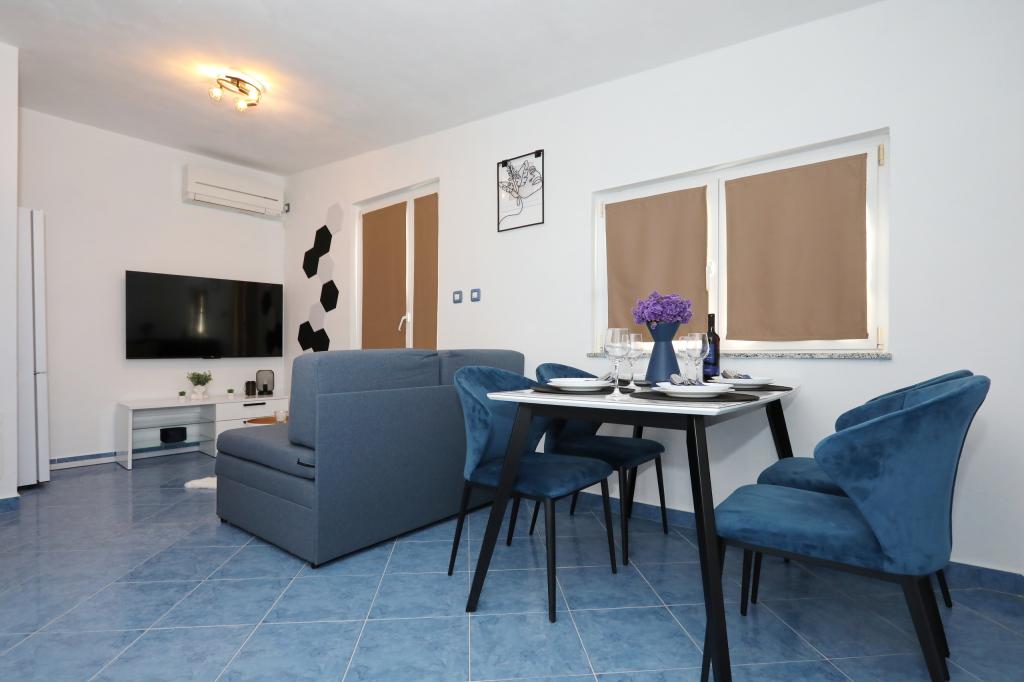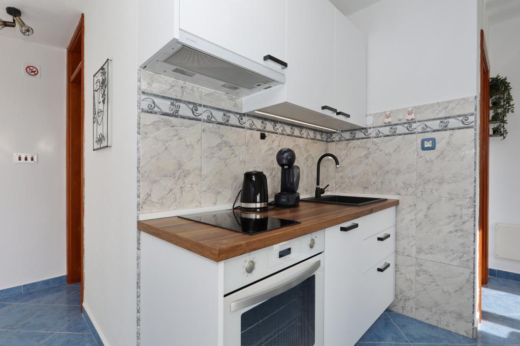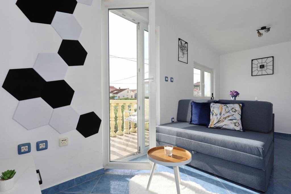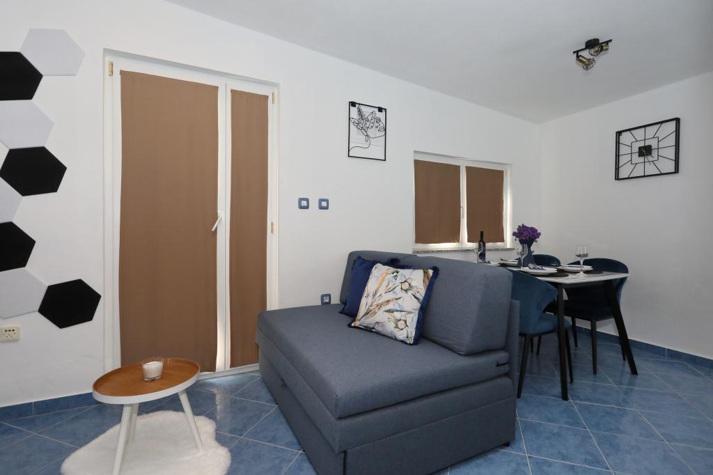 Nymoderne udstyret lejlighed på 45 m2 med balkon i centrum af byen og sikker parkering foran indgangen til lejligheden. Kun ca. 5 minutters gang til butikker, bageri, slagter, marked, apotek, posthus, hæveautomat, restaurant og ca. 5-8 minutters gang til caféer, sundhedscenter osv. Afstanden til den første sten- og betonstrand er 5-8 minutter, og sten- og skyggefulde strande 10-15 minutter til fods. Mulighed for parkering på stranden. Sandstrand med sikker parkering i nærheden af strandbaren 5 minutter i bil. Byen byder på et smukt udflugtsmål Čelinka og ligger i nærheden af en række nationalparker Zrmanja, Paklenica, Krka, Plitvice, Kornati osv.
