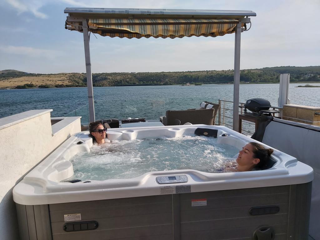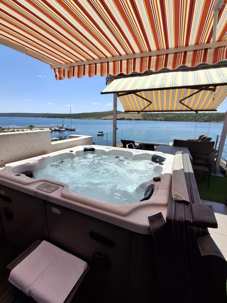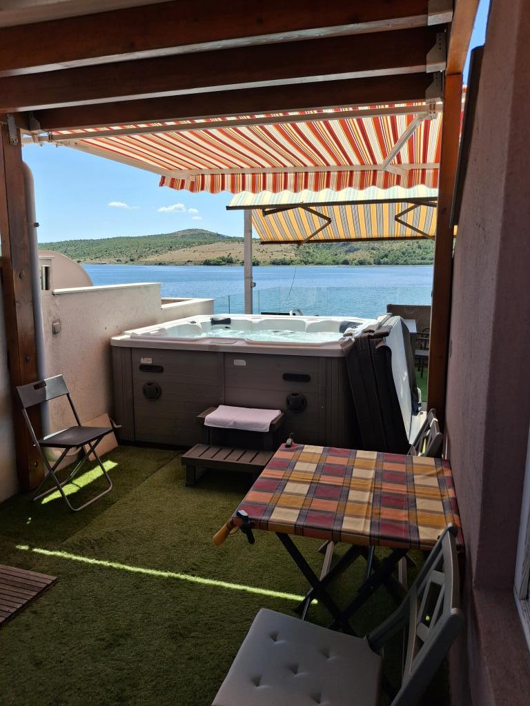 Lejlighederne ligger i første række til havet. De er beliggende i centrum af Posedarje med udsigt over havnen og den lokale kyst langs stranden. Afstanden til den første lille badestrand er 50 m. Den store lokale strand ligger 150 m væk. Lejlighederne er beliggende i et familiehus med separat indgang til lejlighederne. Alle lejligheder har balkon eller terrasse, er møbleret med service, sengetøj og håndklæder. Alle har aircondition og smart LCD-tv. Lejlighederne er kun til 2 personer. Vi tilbyder 1 standard møbleret lejlighed og 1 deluxe lejlighed med en 50 m2 terrasse med privat jacuzzi på toppen af huset, liggestole, håndklæder og markiser til skygge på motorcykler. En del af terrassen er dækket af paneler på grund af regn og for stærk sol, så terrassen kan bruges når som helst på dagen. Bemærk: Lejlighederne er kun til 2 voksne uden mulighed for at modtage flere personer. Vi accepterer ikke børn under 8 år. Vi accepterer kun én lille, ikke-aggressiv hund op til 3 kg, og hunden skal sove på gulvet.