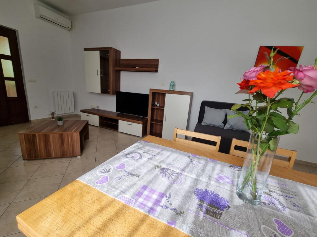 Vi boede i en lejlighed til 4 personer af Klanac-familien. Yderst vidunderlige mennesker; imødekommende, omsorgsfuld, tolerant. Deres velkomst som værter fortjener al ros. Det er en ære at møde sådanne mennesker. Lejligheden er smuk, rummelig. Upåklagelig renlighed, pænhed og pænt udstyr efterlader et særligt indtryk. Magisk dekoreret have; figner, oliven, vinstokke og blomster markerer skønheden i denne lejlighed. Vi anbefaler en ferie til dem, der kan lide hjemmets komfort, naturlig skønhed og værtens adel.