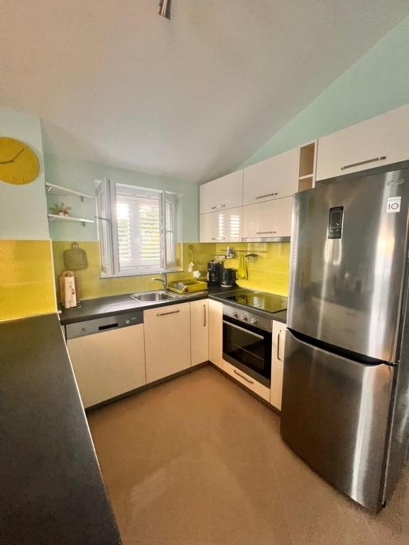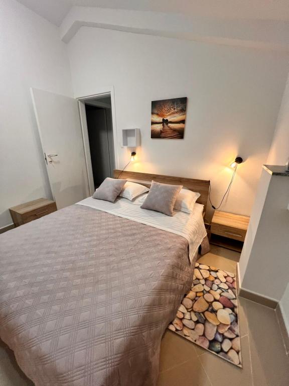 Lejligheden ligger i et feriehus, hvor du vil være helt alene og nyde fred og komfort. Huset ligger i en lille stille landsby nær Posedarje, og 20 minutter væk fra Zadar. Der er 2 parkeringspladser i den aflåste og sikre gård , direkte adgang til stranden og havet uden trængsel og masser af mennesker. Lejligheden ligger på 1. sal med en skøn stor terrasse og udsigt over havet. Stor stue med fuldt udstyret køkken med ovn, opvaskemaskine, kaffemaskine, elkedel. 2 smukke soveværelser med dobbeltsenge Hvis du vil hvile og nyde fred, er denne lejlighed i et feriehus ideel til dig. Du vil blive vækket af lyden af havet og fuglenes kvidren. Alle nødvendige butikker og restauranter ligger 5 minutter væk med bil. Dejlig bolig til max 4 personer Kom og besøg os Fra gården går du direkte til stranden og havet, hvor du har fred uden trængsel. En have med middelhavsplanter til afslapning.
