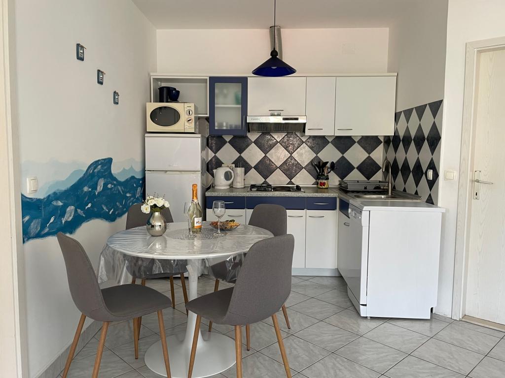 Turistskat er inkluderet i prisen.Al ros til ejerne af lejligheden: fra arrangementet, velkomst, gennem lejlighedens udstyr og hygiejne til information om aktuelle begivenheder i Postira. Det var meget bekvemt for børnene og mig, fordi stranden ligger to minutter fra lejligheden, alt er som på billederne, og hver detalje i værelserne er funktionelt designet. Stranden opfylder forskellige kriterier: Børn kan hoppe fra anløbsbroen i havet, leje en gribbe eller vandcykel, du kan nyde freden og roen lidt længere på klipperne, og cafeen på stranden er diskret og tilbyder fremragende service. Placeringen af lejligheden er fremragende, parkering er meget tæt på, alt er behageligt og roligt. En femten minutters gåtur langs havet fører til centrum. Sandstranden Lovrečina ligger 10 minutters kørsel derfra, og Zlatni Rat ligger 50 minutter derfra. Fra færgehavnen i Supetar er der 15-20 minutters kørsel gennem fyrretræernes skygge. Den er også nem at få, og som solomor til to børn (12 og 8 år) var intet svært eller kompliceret for mig at finde eller flytte rundt på øen med børn. Postira er et ideelt valg til både en rolig og aktiv ferie, fordi det har en bekvem beliggenhed på Brač, og selve stedet er meget charmerende og har en smuk farve på himlen i skumringen. Det var vigtigt for børnene at have en god WiFi-forbindelse, og det havde vi, og alt i alt ville vi elske at komme tilbage næste år og tage venner med. Tak til Jelinčić-familien for deres gæstfrihed.
