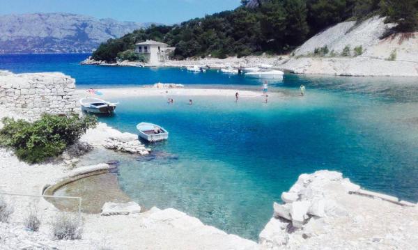Lejlighederne er placeret for at komme dertil, uden for byens centrum (200 m) i bugten Ticja havn, i et roligt og omgivet af grønne områder. Beach af huset kun 3 minutters gang er sten og grus. På stranden ingen skarer, og havet er krystalklart. Lejlighederne er nye og fuldt udstyret. Øen er godt forbundet med færge til fastlandet (Supetar, Sumartin) / dag i løbet af sæsonen og op til 15 skibe. Velkommen!