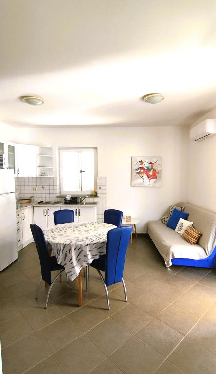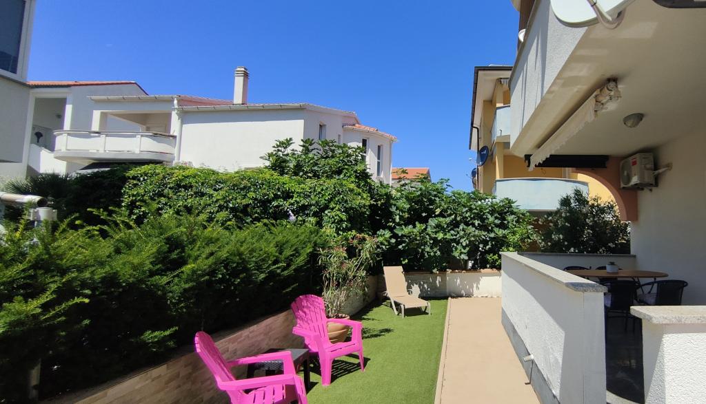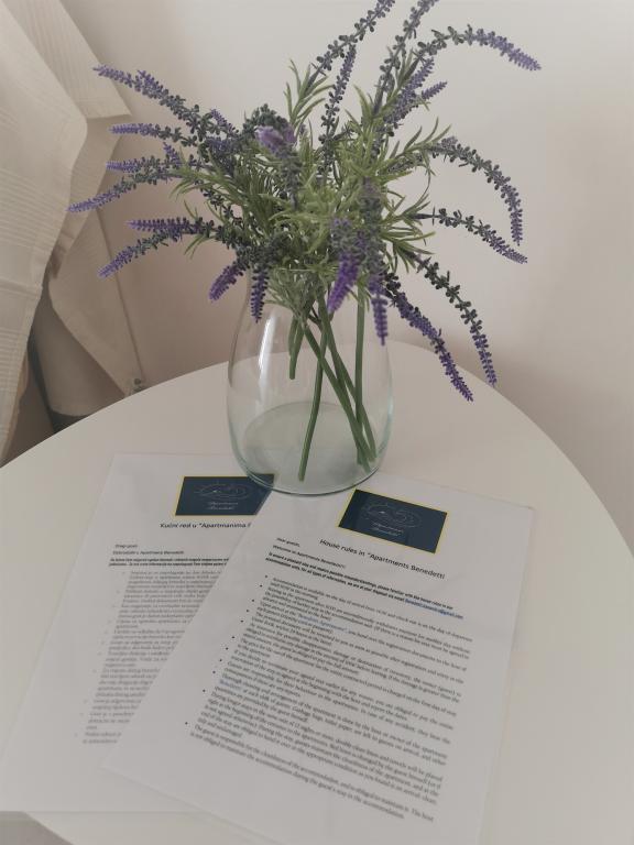 "Benedetti Apartments" ligger næsten lige ud til stranden, med en perfekt beliggenhed hvor man næsten kunne hoppe lige i havet! De er placeret på et lille, roligt sted, perfekt til afslapning, 2 rækker fra vores hovedstrand. Dette er en mulighed for at undslippe stress og jag og starte den perfekte ferie. Lejlighederne er udsmykket med anlagte haver, hvilket skaber et ideelt miljø for afslapning. Forestil dig dig selv på liggestole med en cocktail, omgivet af fred og blomster. Stenstranden "Mali Dubrovnik" ligger kun 20 m væk (2 minutter), og sandstranden ligger kun 5 minutters gang væk. Der ligger restauranter 50 m væk, og en butik ligger 30 m fra lejligheden. For større indkøb kan du nå Povljanas centrum ved let at gå eller køre (600 m). En café og tennisbane ligger kun 20 m væk, lige på den anden side af gaden. Lejlighederne ligger i stueetagen, perfekt til familier med børn og par, der elsker en rolig ferie. Lejlighedsbrugere har gratis parkering og internet, mulighed for at bruge en grill, og der er fælles udendørsarealer til afslapning. Parker din bil og nyd!