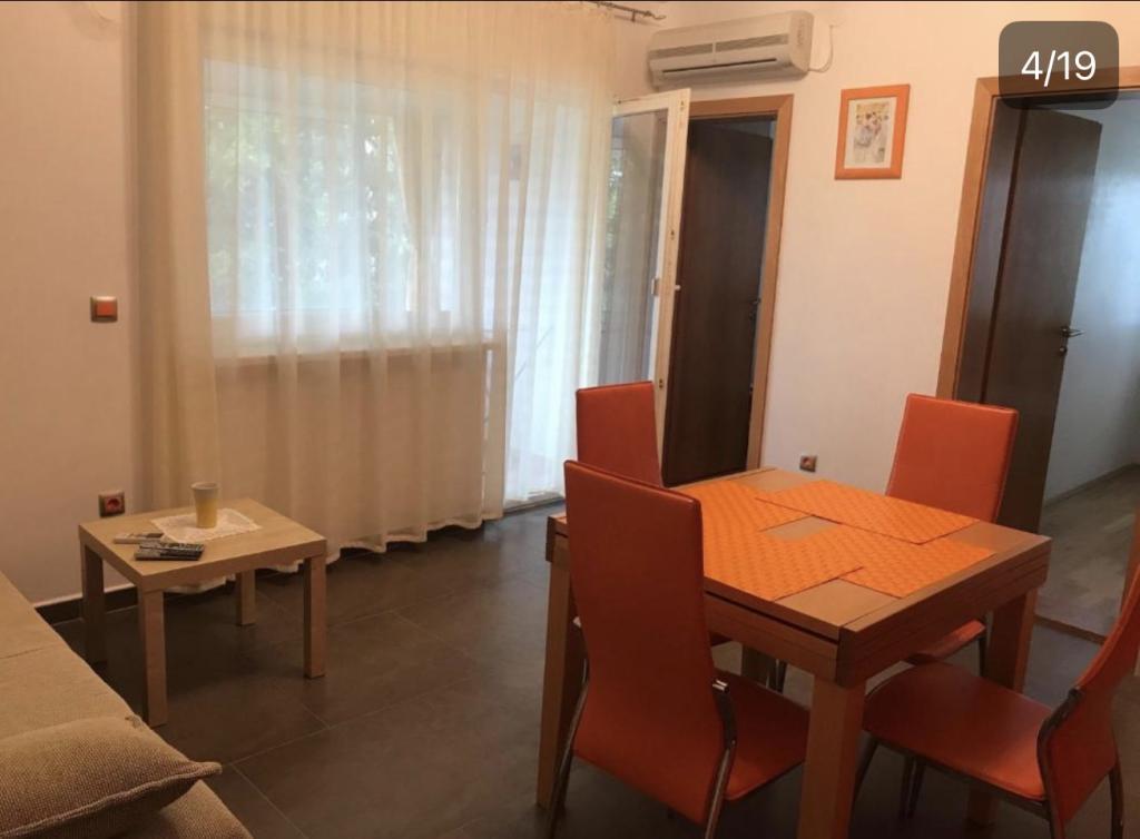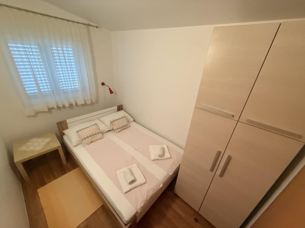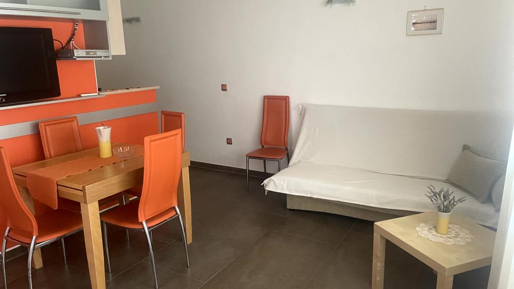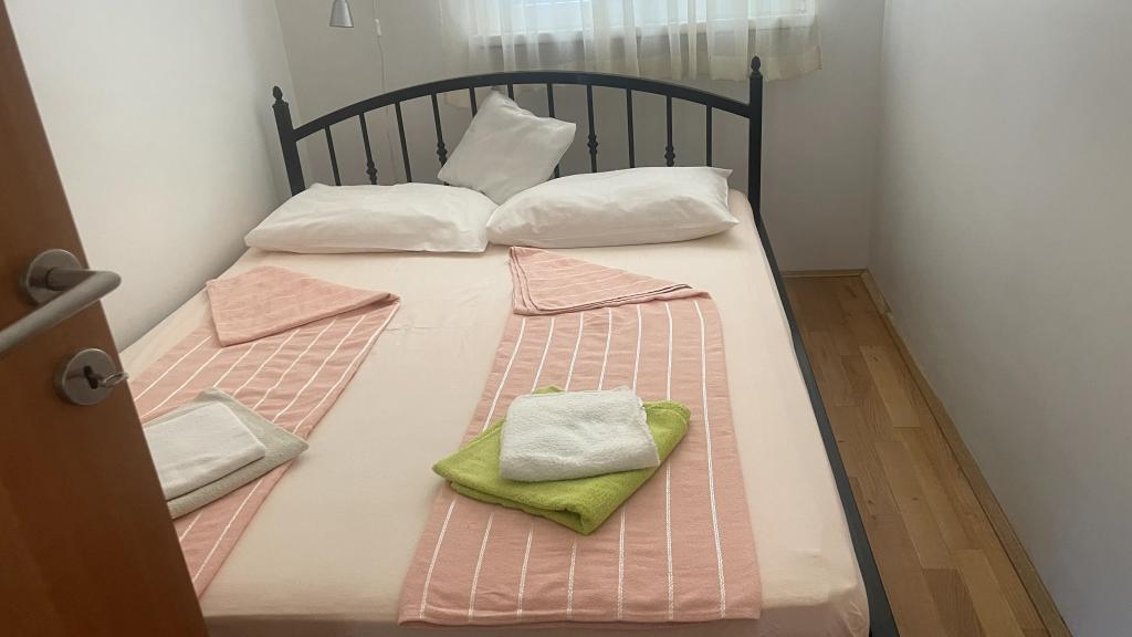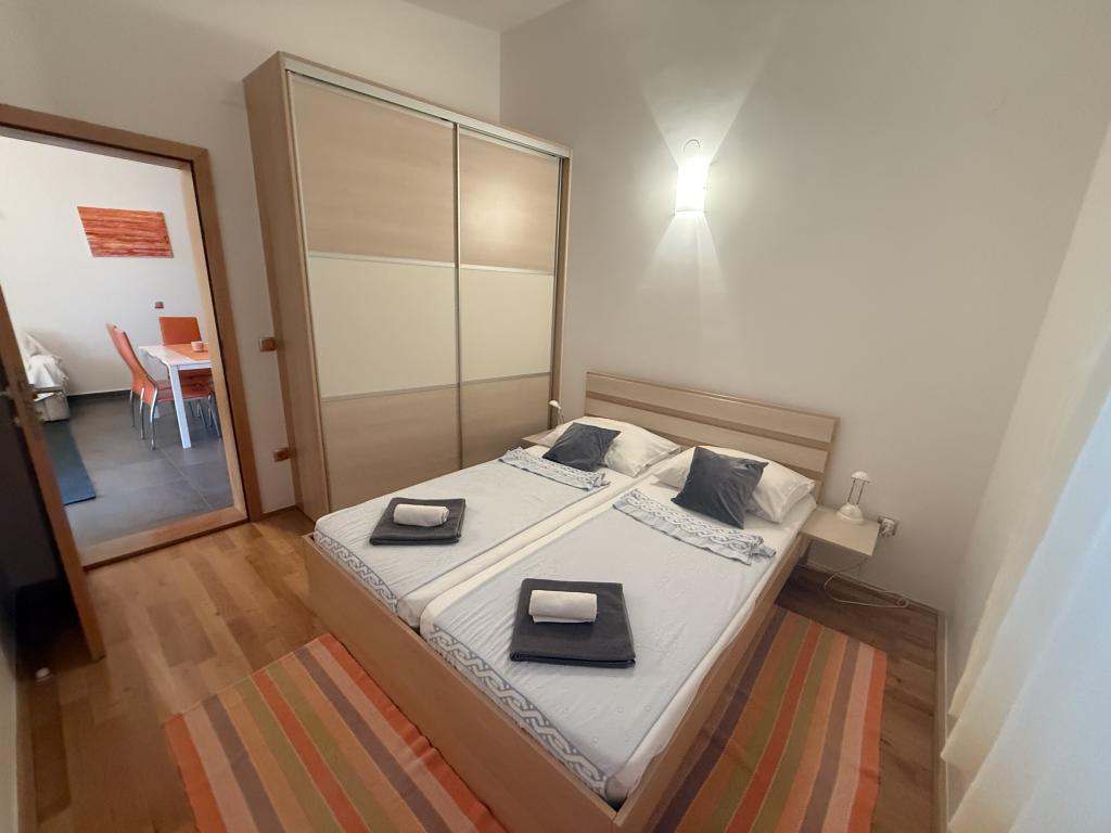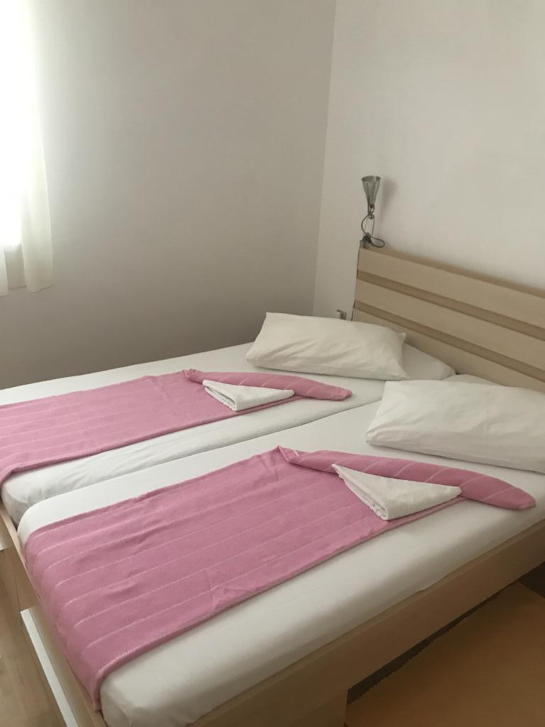 Lejligheder ideelle til familieferier Vi tilbyder tre næsten identiske lejligheder, der hver især er tilpasset til en komfortabel familieferie. Hver lejlighed består af: Stue med spiseplads og køkken To soveværelser: forældrenes (160x200) og børnenes (140x200) Stue med sofa. Køkkenet er udstyret med standardovne med induktionskogeplader, lille køleskab, elkedel og filterkaffemaskine samt alt nødvendigt service. Badeværelset har en brusekabine, det er lille, men funktionelt. Hver lejlighed har et roligt hjørne i form af en loggia med en skydevæg. Der er myggenet for alle vinduer. En udendørs grill med bord og stole til at nyde naturen er også tilgængelig for vores gæster. Vores hygiejnestandard er meget høj, hvilket er særligt vigtigt for os. Prisen inkluderer: Aircondition Turistskat Satellit-tv (vi har ikke Smart TV) Komplet service og sengetøj Et håndklæde til hver gæst Kæledyr er tilladt efter aftale og til en specialpris.