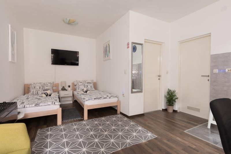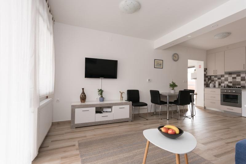 I en rolig beliggenhed, kun 150/250 m fra byens centrum, er der 4 boligenheder med hver 4 senge. Lejlighederne har aircondition med parkering, overdækkede terrasser og udstyret køkken (køleskab, komfur, mikroovn, udendørs grill...) - ideelle for singler, par eller familier og grupper, i kortere eller længere tid.
