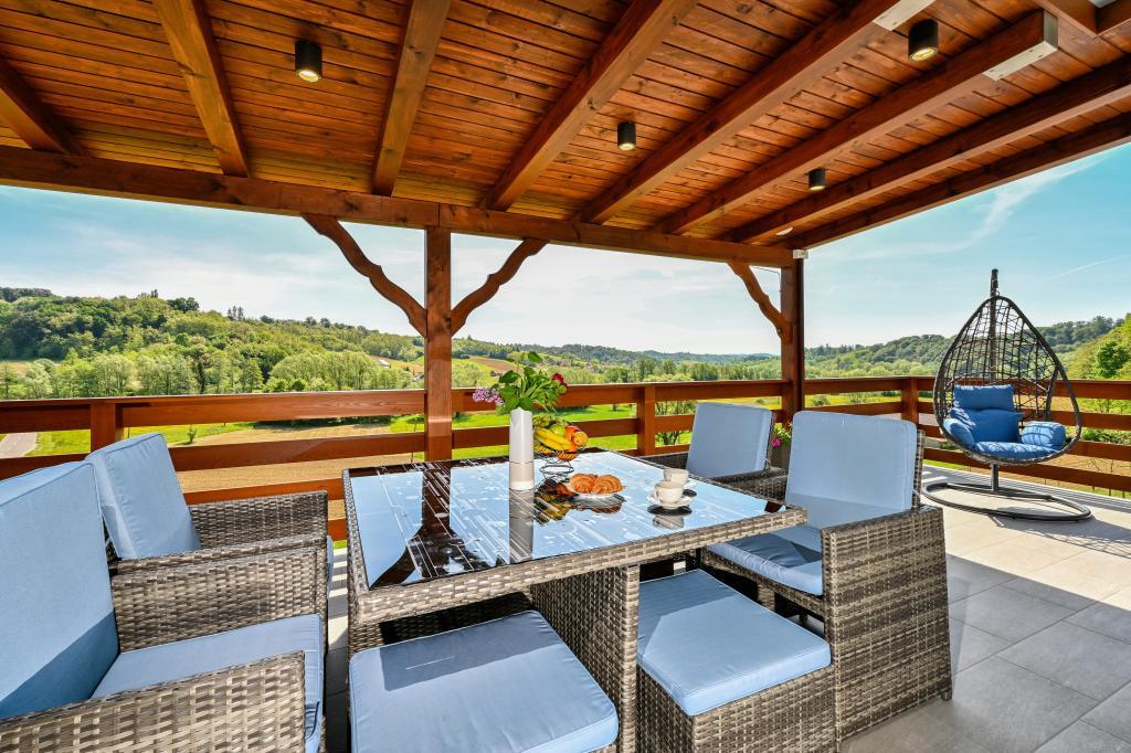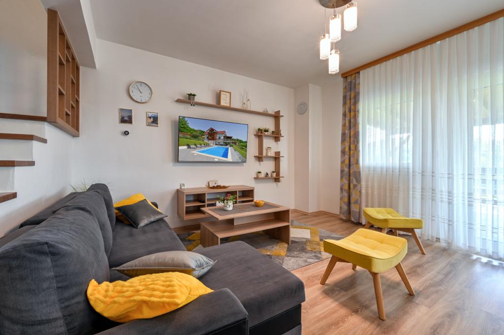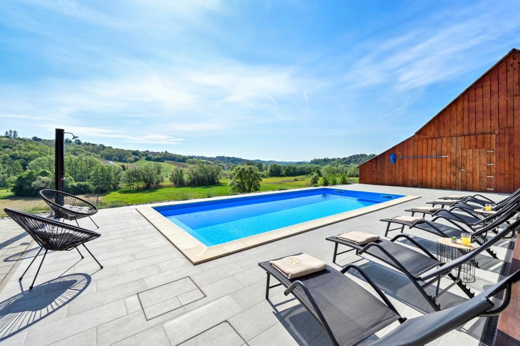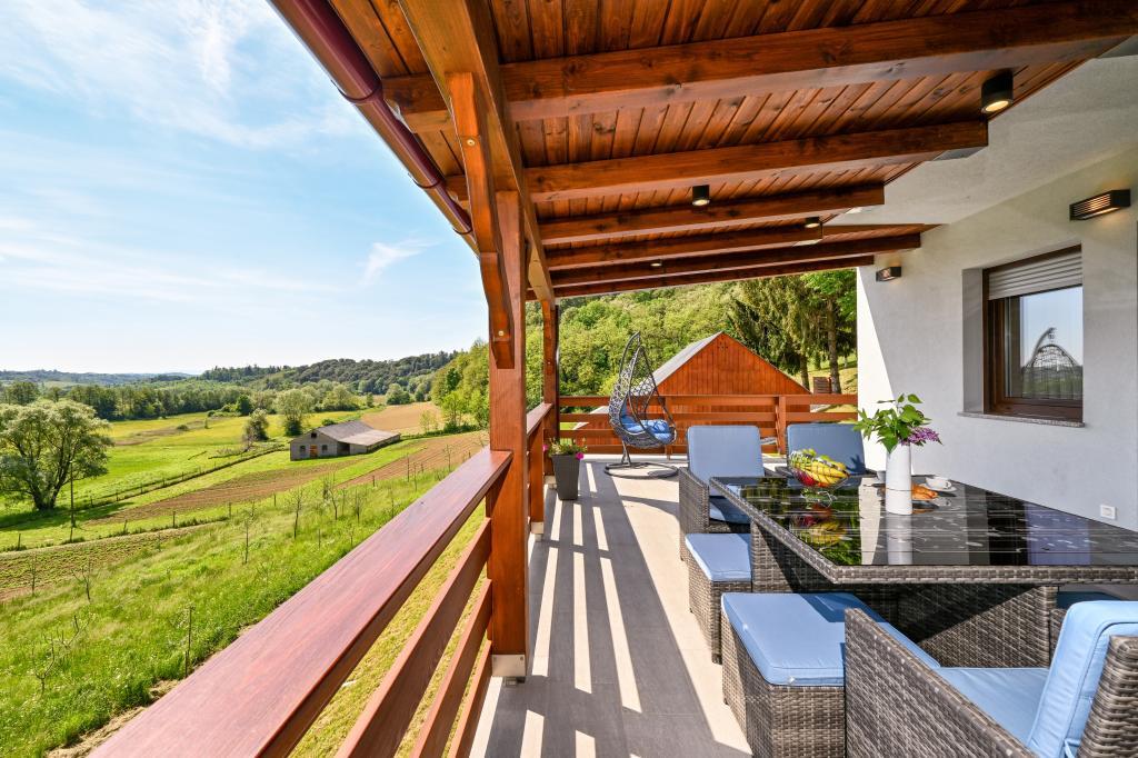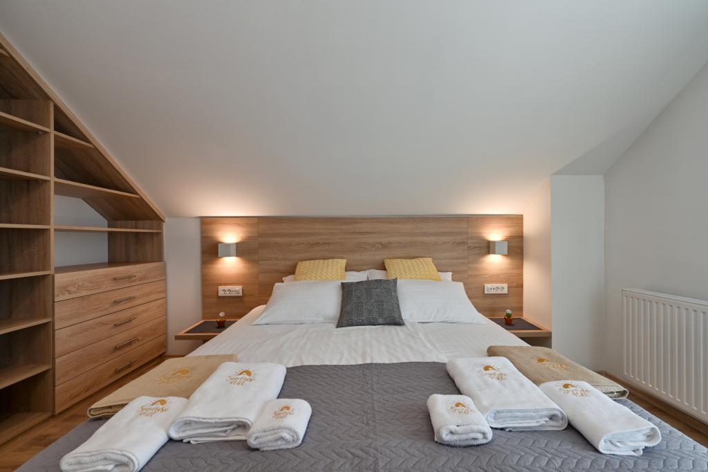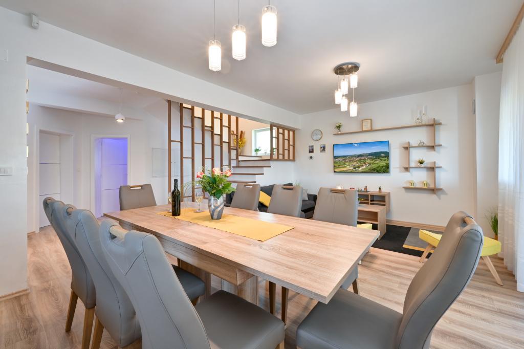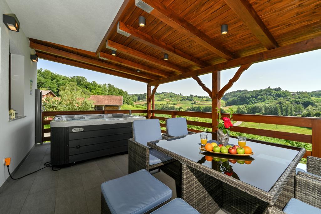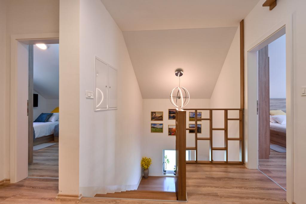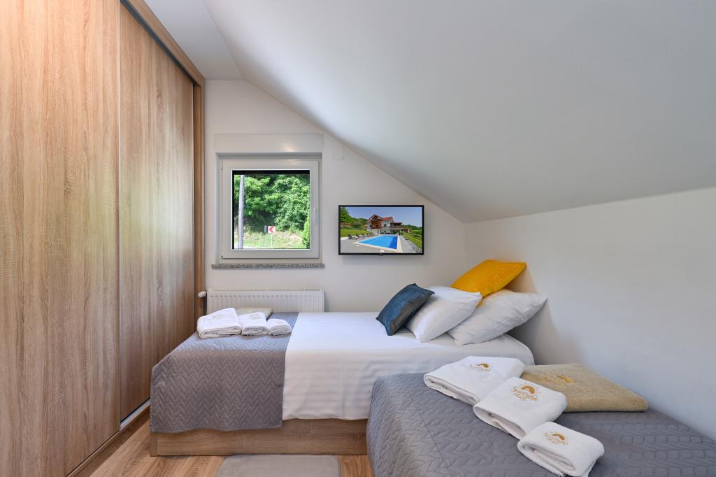 Dette utrolige hus ligger på en af de mange bakker i smukke Zagorje. Omgivet af bakker, vinmarker, frugtplantager og skove, er det et ideelt sted at nyde og hvile i naturen. Den vidunderlige udsigt, der strækker sig, giver mulighed for at nyde smukke solopgange, som huset har fået sit navn af. Sunrise Hill er kategoriseret med 4* og giver komfortabel indkvartering til 8 personer, og er primært orienteret mod familier med børn. Det er perfekt til en rolig ferie eller socialt samvær, men også til rekreation og sport. Udover den anlagte have, som byder på en stor swimmingpool med bruser og en overdækket og åben terrasse, en grill, et legehus, parkering, er huset indrettet med et minutiøst indrettet interiør domineret af træ og lyse og beroligende toner. Huset består af en stueetage med en rummelig stue med køkken og spisestue, et badeværelse, et legerum til børn med bordfodbold, en PS 4 spillekonsol og brætspil samt en rummelig terrasse, der inviterer til hvile og socialt samvær. Der er tre soveværelser på første sal i huset.