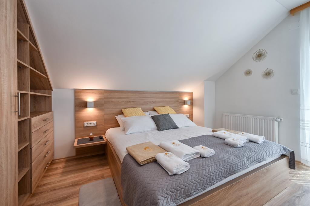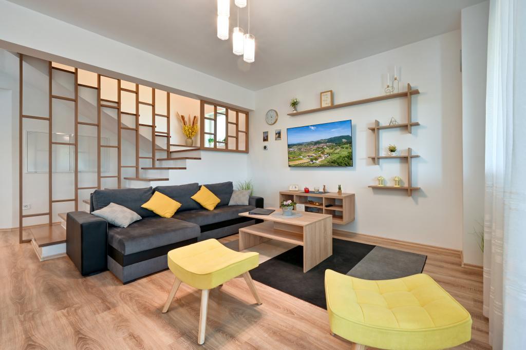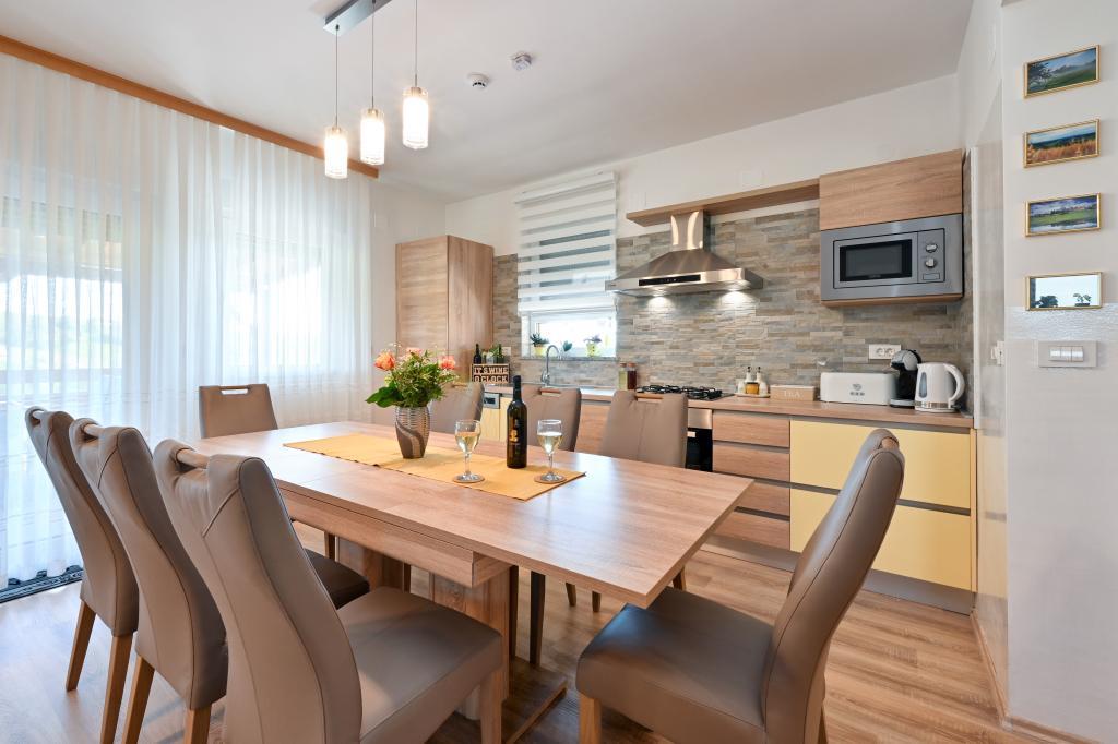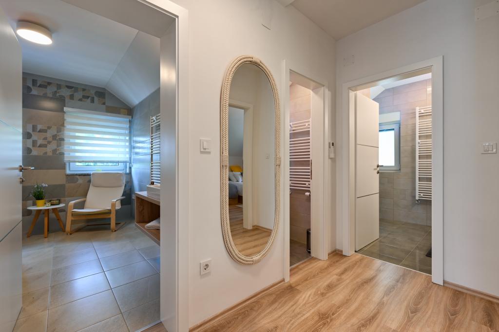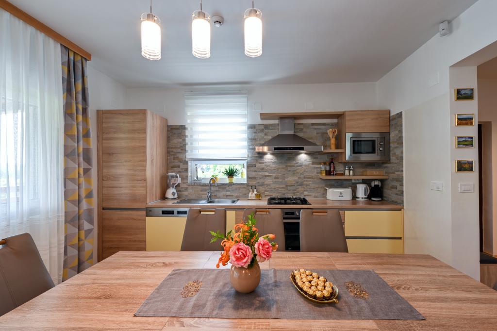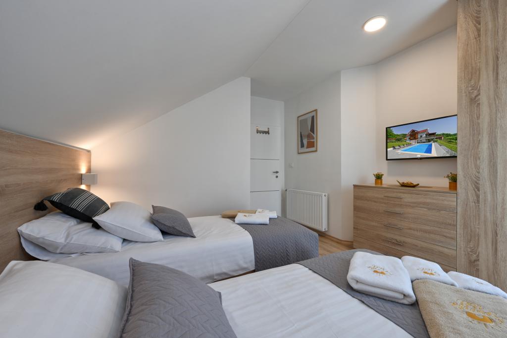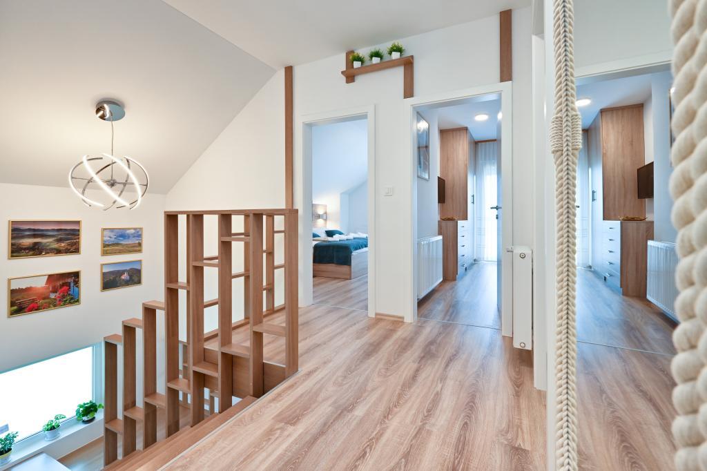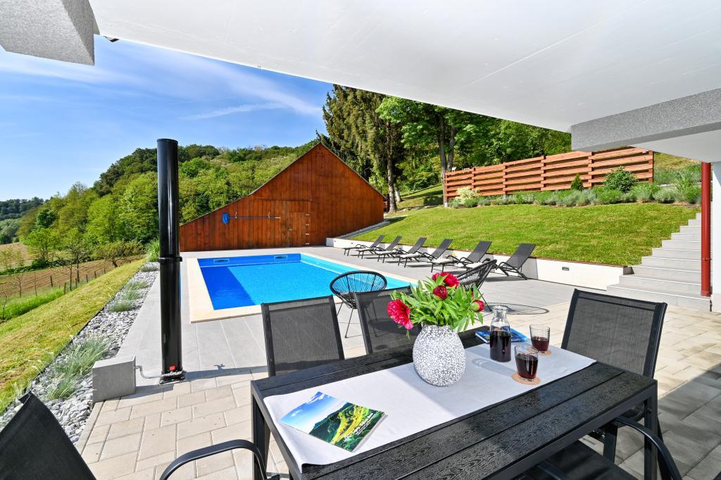 Dette utrolige hus ligger på en af de mange bakker i smukke Zagorje. Omgivet af bakker, vinmarker, frugtplantager og skove, er det et ideelt sted at nyde og hvile i naturen. Den vidunderlige udsigt, der strækker sig, giver mulighed for at nyde smukke solopgange, som huset har fået sit navn af. Sunrise Hill er kategoriseret med 4* og giver komfortabel indkvartering til 8 personer, og er primært orienteret mod familier med børn. Det er perfekt til en rolig ferie eller socialt samvær, men også til rekreation og sport. Udover den anlagte have, som byder på en stor swimmingpool med bruser og en overdækket og åben terrasse, en grill, et legehus, parkering, er huset indrettet med et minutiøst indrettet interiør domineret af træ og lyse og beroligende toner. Huset består af en stueetage med en rummelig stue med køkken og spisestue, et badeværelse, et legerum til børn med bordfodbold, en PS 4 spillekonsol og brætspil samt en rummelig terrasse, der inviterer til hvile og socialt samvær. Der er tre soveværelser på første sal i huset.