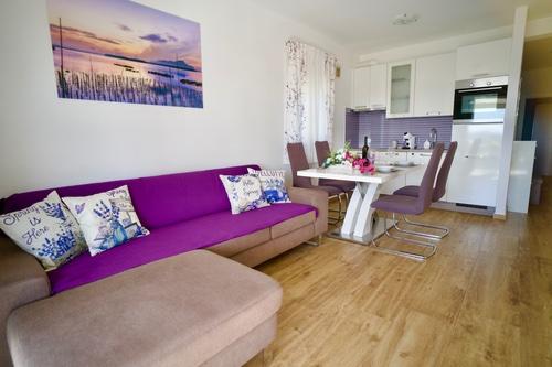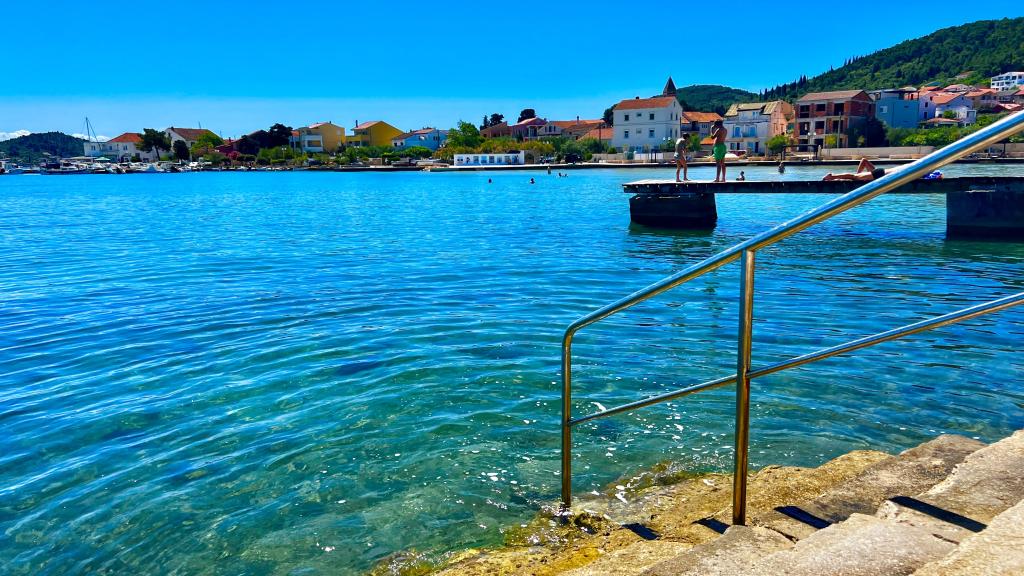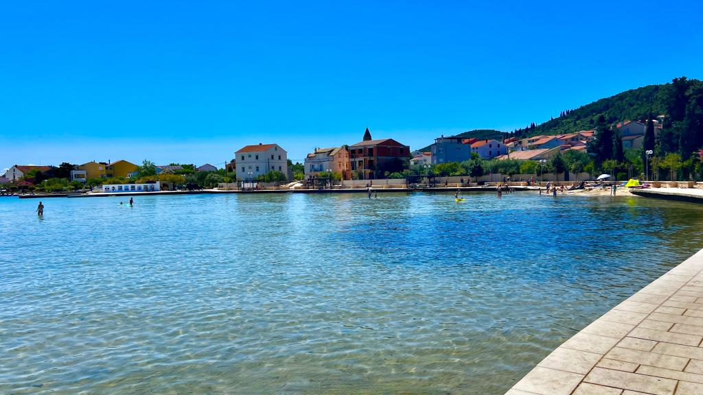 Selve lejligheden ligger lige over Jaz-stranden. Lejligheden består af et soveværelse med en dobbeltseng, en dobbelt sovesofa, en sovesofa, et børneværelse, et badeværelse, en stue og en terrasse med en smuk udsigt over hele byen. Lejligheden har plads til 2+2 personer og har 4 stjerner. I nærheden af lejligheden er der en stor butik, restauranter og en sandstrand. Selve øen Ugljan har masser af aktiviteter, lige fra vandreture, bjergbestigning, cykling til fiskeri. Der er også forskellige seværdigheder på øen, herunder fæstningen St. Michael og holmen Galovac, som er værd at besøge. Du kan også leje en båd på øen for at tage dig med på udforskning af den smukke skærgård.