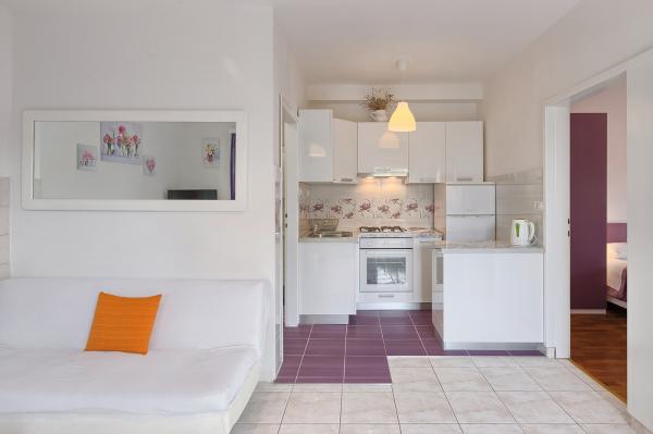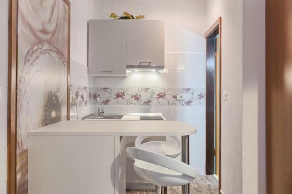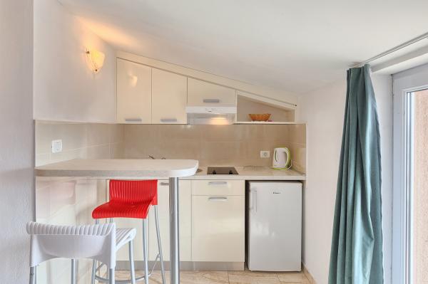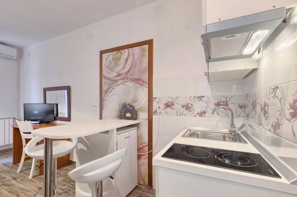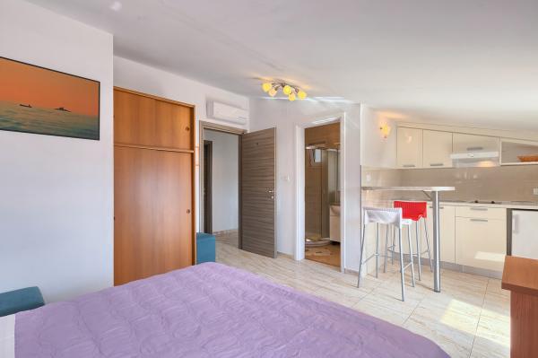 For et ophold på kun én nat er prisen 50 % højere. For et ophold på 2 til 3 nætter er prisen 25 % højere. Prisen stiger med 5 €, for ankomsten af en tredje person i begge studier S 1 Brugen af aircondition er ikke opkrævet ekstra. Opholdsskat opkræves 1,5 € per person per opholdsdag. Leje af en lejlighed betyder, at man går ind i lejligheden kl. 13.00 på reservationsdagen og forlader lejligheden kl. 10.00 på opholdets sidste dag. Sengelinned, håndklæder, el, vand og slutrengøring er inkluderet i lejen.