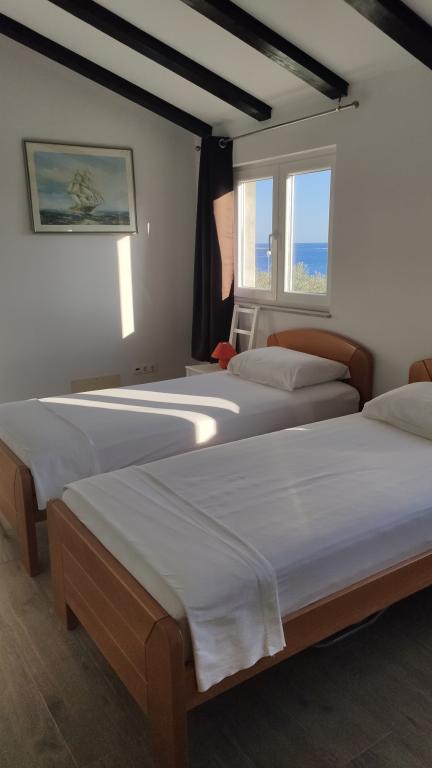 Haus Grego kan varmt anbefales: Lille, romantisk indrettet hus med en fantastisk havudsigt (beliggende direkte ved en romantisk kirke) på terrassen og balkonen. Hus og terrasse er veludstyret med alt hvad du behøver, omgivet af oliventræer og middelhavsflair. Vand er sjældent og derfor værdifuldt på øen, og du bør spare lidt! En lille downer er en ret høj brummen, som man ofte hører om natten (sandsynligvis kommer fra vandpumperne/cisternerne) og madrasserne kunne være lidt bedre. Petar har møbleret terrassen med et fantastisk sæt stole og liggestole og er tilgængelig under hele dit ophold eller henter dig på færgen! Vi vil være tilbage!