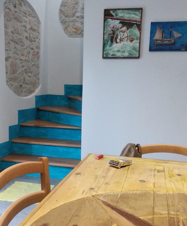 Feriehus beliggende på vestsiden af øen nær havet og smukke stenstrande. Huset består af stueetagen med køkken, stue og et lille toilet. Ovenpå er der to soveværelser, et dobbelt og et med en stor dobbeltseng, badeværelse og en rummelig terrasse. Byens centrum og postkontor ligger kun ti minutters gang fra ejendommen.
