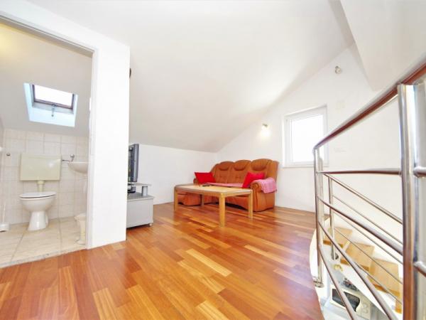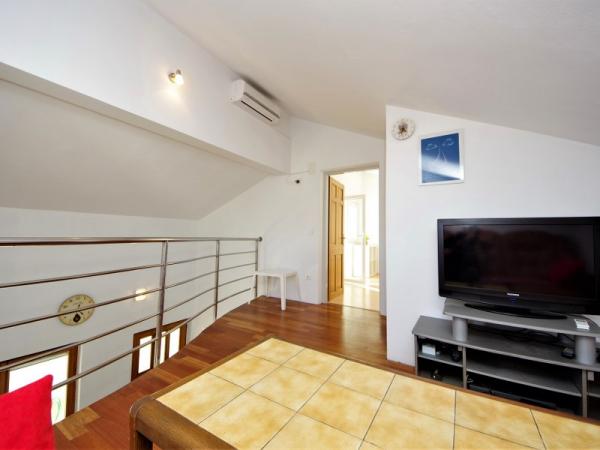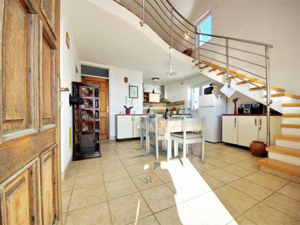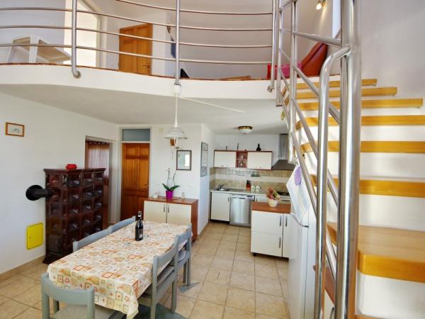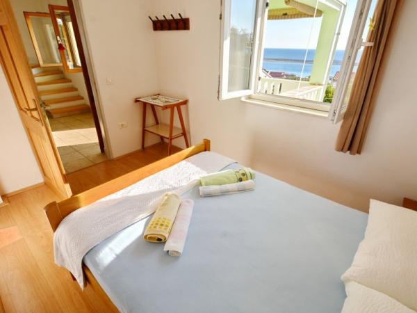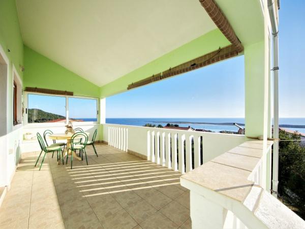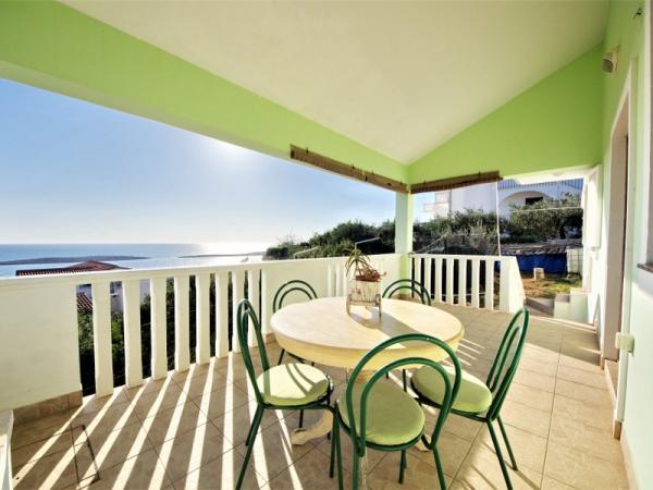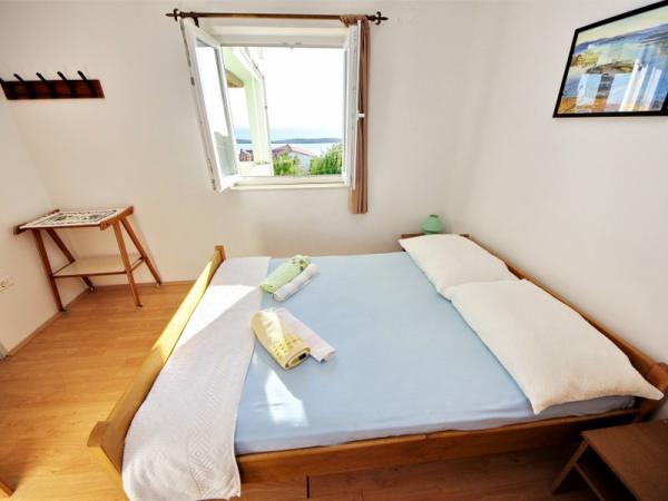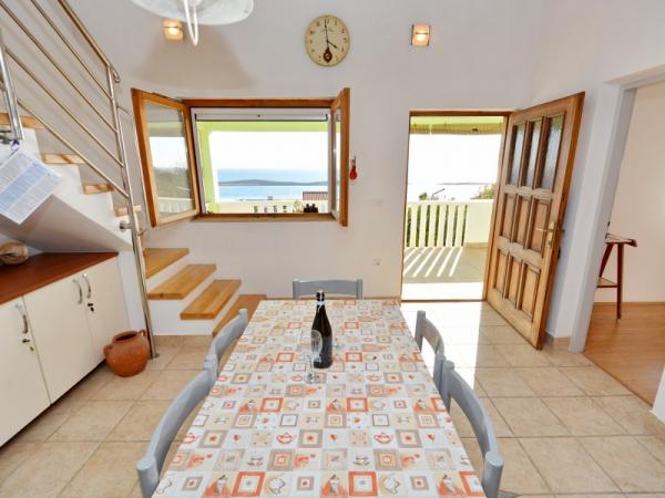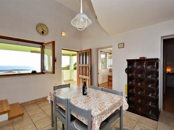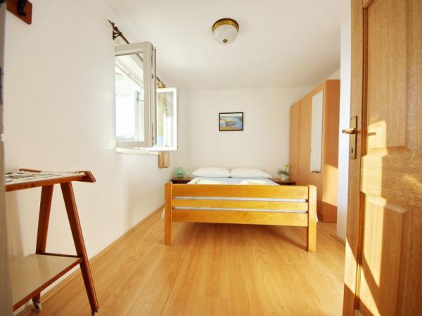Familieferiehus beliggende i en rolig og høj beliggenhed på den vestlige side af øen. Fra den rummelige terrasse kan du nyde udsigten over det åbne hav og de nærliggende øer og den unikke solnedgang. Butikken, færgehavnen, restauranten og stranden ligger kun et par minutters gang fra huset, mens øens centrum ligger på toppen af bakken og ligger 5-6 minutter væk.