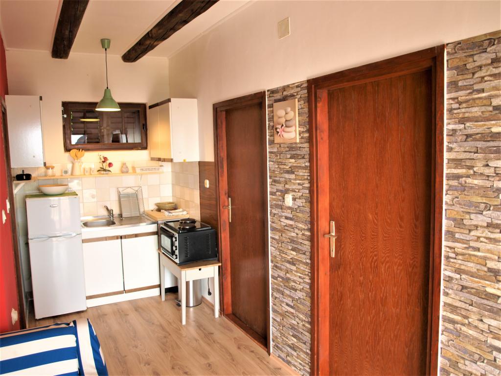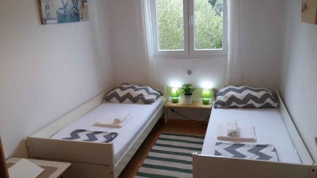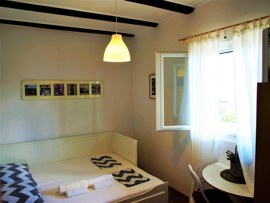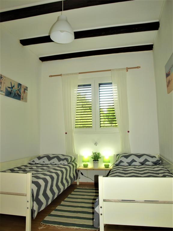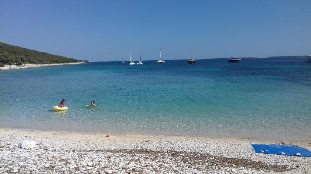 Feriehuset ligger tæt på havet med en smuk udsigt over det åbne hav. Ideelt til en ferie og en pause fra den travle livsstil. Få minutters gang til hovedstranden, cirka 200 meter fra butikken, samme afstand fra restauranten og hovedhavnen, hvor katamaranen og færgen lægger til kaj. Alt er tæt på, og alligevel ligger huset i et roligt og lidt afsidesliggende område, da det sidste hus for enden af øen kun ligger 50 meter fra havet. Ejendommen er uafhængig, et hus hvor man er alene (naboer er kun på den ene side, og på den anden er der ingen for enden af øen), har to værelser, det ene er et soveværelse med to separate senge, det andet værelse har en seng til to personer. Huset har en stue og køkken, badeværelse med bruser. Der er også to terrasser med havudsigt. En stor med et bord til flere personer, og den anden terrasse, som man har direkte adgang til fra huset. Husets areal er 38 kvadratmeter, med en overdækket terrasse på 14 kvadratmeter og en terrasse lige foran husets indgang med udsigt over havet. Øen kan nås fra Lošinj og Zadar (jadrolinija.hr eller tp-line.hr). Gratis parkering.