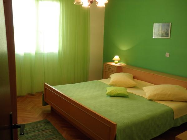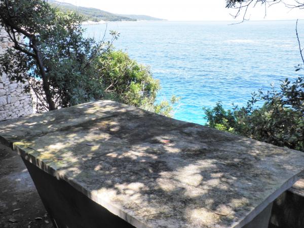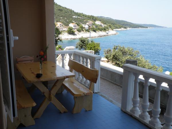Disse komfortable og rummelige lejligheder ligger i den fredelige bugt Prigradica på øen Korcula. De ligger første række til havet og har deres egen strand (10 m), et særligt sted i skyggen med et stenbord og bænke, hvor de kan skjule dem, der længe forbliver i solen forstyrrer. Det ligger 3 minutters gang fra messecenterets centrum og 7 minutters gang fra grusstrand, sportsplads og restauranter. Lejlighed på første sal har 3 soveværelser med dobbeltseng (2. sal 2), køkken og stue, badeværelse, terrasse og udendørs pejs. To soveværelser har havudsigt og på øen Hvar. Der er 2 håndklæder og sengelinned til rådighed, som ændres en gang om ugen. På terrasserne, hvorfra solnedgangen byder på en smuk udsigt over solnedgangen, er der træhave møbler. Lejligheden er udstyret med aircondition, tv, parabol, køleskab og fryser, gas og el-komfur, ovn, mikroovn, kaffemaskine, brødrister, strygejern, hårtørrer, vaskemaskine, grill
