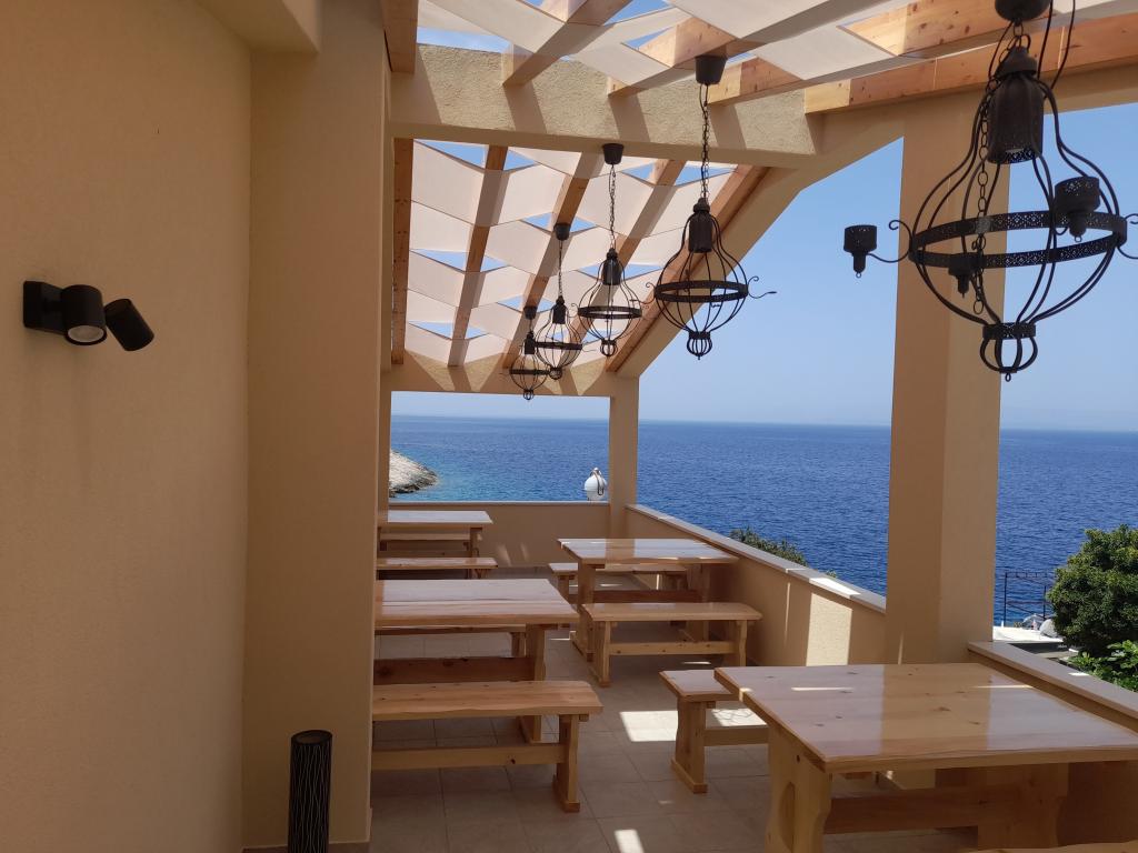 Placeringen er unik, havet er fremragende, lejligheden er ren, rummelig terrasse, en fantastisk udsigt over havet ved siden af cafeen på terrassen med siddepladser, meget venlige værter, taverna - pizzeria på beliggenhed med meget velsmagende mad og meget venlig service. Højt anbefalet!
