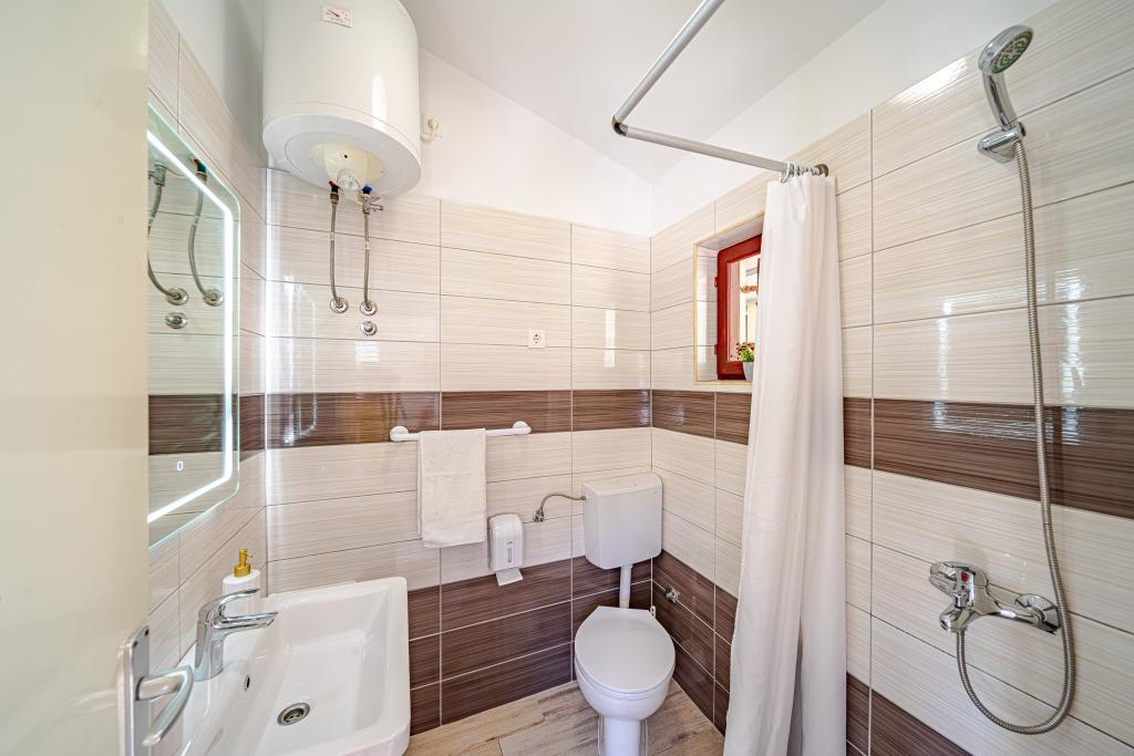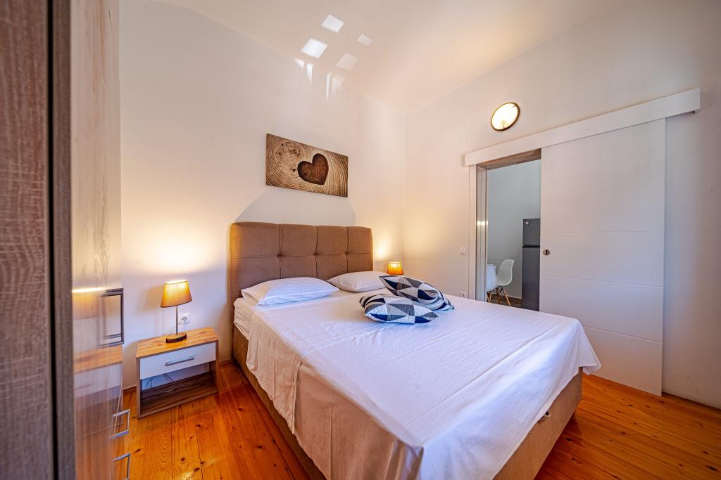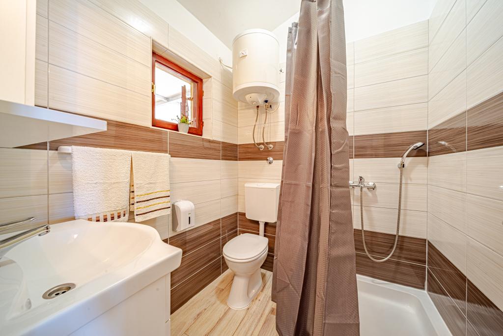 Vores oplevelse med denne indkvartering var ret skuffende, primært på grund af værtens opførsel, som var yderst ubehjælpsom, utilgængelig og ugæstfri. Desværre ødelagde dette i høj grad det samlede indtryk af vores ophold. Ved booking blev det ikke angivet nogen steder, at der var en restaurant i samme hus, hvilket er vigtigt at bemærke, fordi det påvirkede privatlivets fred og ro. Ved ankomsten opdagede vi, at vores reservation ikke var registreret korrekt, så vi fandt en anden i vores lejlighed. Værten fandt hurtigt en alternativ indkvartering til os, som var ekstremt forældet og ubehagelig, bogstaveligt talt med elementer fra den tidligere stat. Parkeringspladsen, der er annonceret som sikret, deles faktisk med restaurantens gæster, og indgangen og trappen deles, hvilket betyder, at vi delte en del af pladsen med restaurantens besøgende. Terrassen, som skulle være separat, var ikke fysisk adskilt, så gæsterne kunne frit passere gennem vores del. Restauranten er åben til sent om aftenen, hvilket forstyrrede roen og afslapningen. Køleskabet kølede ikke ordentligt, ventilationen på badeværelset virkede ikke, og vandhanen i køkkenet skulle repareres, fordi den drejede i begge retninger, når den blev brugt. Selvom selve beliggenheden var praktisk, gjorde alle disse situationer og værtens opførsel opholdet ubehageligt, og vi ville ikke booke igen.