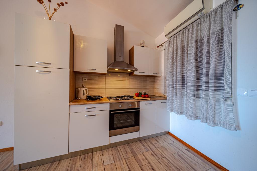 Lejligheden er fantastisk. Beliggende fantastisk med en smuk udsigt over havet og solnedgangen. Den ligger i et roligt område, hvilket er perfekt til en afslappende ferie. Værterne er meget venlige og gæstfrie. Lejligheden er stor nok til to personer, den er ren og ryddelig. Der er en meget stor grill bagved. Stranden er meget tæt på, lige på den anden side af vejen. Der er også et pizzeria ved siden af, hvor man kan nyde en god middag med udsigt over solnedgangen. Vi var meget tilfredse med lejligheden for anden gang og ville med glæde vende tilbage.