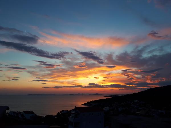 Picnic og efter en maj dag. Et smukt og frem for alt roligt sted. Strande i en afstand på 300-400 meter, der er også pubber, hvor man nemt kan spise mens man beundrer solnedgange. Et godt sted at slappe af med børn og dyr - vi var her med to katte og der er ikke noget problem eller ekstra omkostninger. Der er alt, hvad vi har brug for - et fuldt udstyret køkken, wifi, tv, grill, aircondition og i denne periode duftende roser på balkonen. At byde velkommen til et smil og tinkturer for at prøve. Værten - meget nice og hjælpsomme (vi havde et lille problem med bilen men Tata mekaniker hjalp os med det samme). Vi er i Kroatien for tredje gang (tidligere - Tucepi, Igrane -Seline) og prisen vi betaler for disse øjeblikke af stilhed og hvile er den laveste under hensyntagen til standarderne. Der er steder af ro og stilhed og synspunkter, især Gospa af Loreta (i dag og aften). er tæt på de vigtigste butikker: konzum 10 min ,, tommy 12 og hvad det vigtigste fiskemarked (lækkert grillet) 20 min, så hvorfor ikke ønsker mere tak for din gæstfrihed