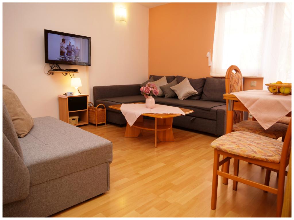 Lejligheder Tina-Toni ligger ved indgangen til Primosten, i en rolig beliggenhed med udsigt over den gamle Primosten og havet. Og til en af de smukkeste strande i Primosten (mala raduca) er kun 150 m. I venstre og højre del af bygningen lejer Batinić-familien (ellers bosiddende i Tyskland) to to-værelses aircondition-lejligheder (brug af aircondition mod et ekstra gebyr). Stuen i den venstre lejlighed kan bruges som et soveværelse, mens der i den højre lejlighed er en dobbeltseng i begge værelser. En rummelig have, grill, solterrasse, garage og udendørs parkeringspladser er en garanti for, at gæsten får alt, hvad han har brug for.