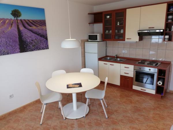 Fuldt udstyrede lejligheder, beliggende i et familiehus i et roligt område af Primošten. Anlægget ligger 10 minutters gang fra centrum og stranden. Parkeringspladser er placeret ved siden af anlægget.