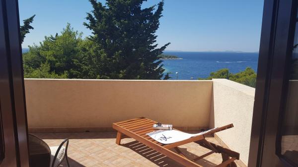 Turistskat er ikke inkluderet i prisen.Fantastisk indkvartering! En ren og smuk lejlighed med udsigt over havet og en skøn stor terrasse, som ikke er for varm. Fru. Iva er en meget venlig og hjælpsom ejer af lejligheden, som altid vil hjælpe dig. Lejligheden ligger meget tæt på stranden, hvor vi bader. Vi anbefaler det til alle. Næste år kommer vi for fjerde gang.