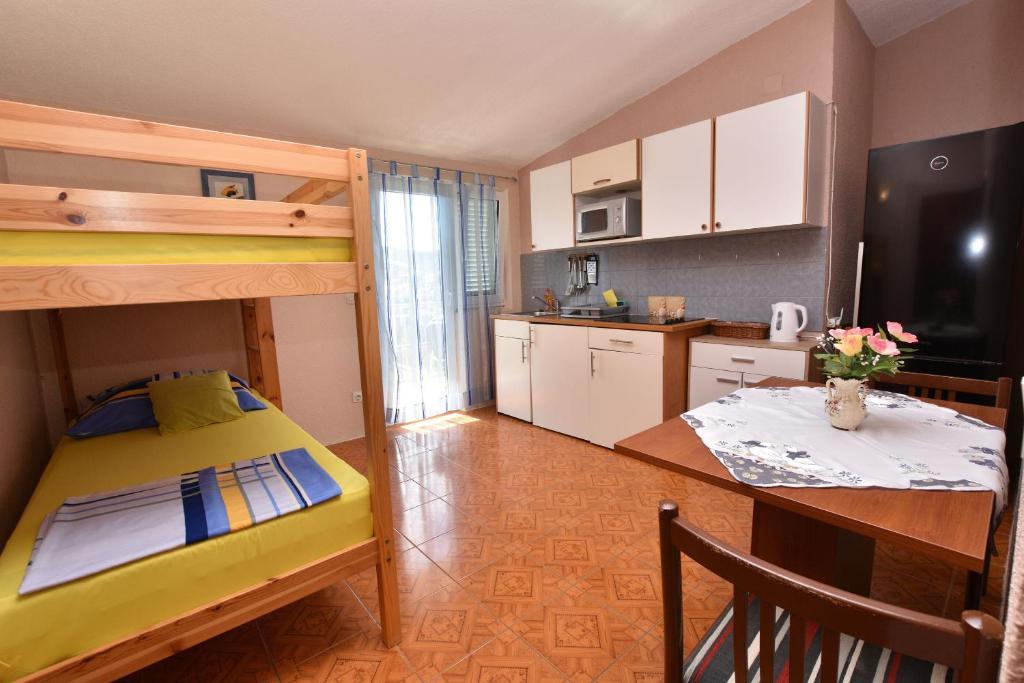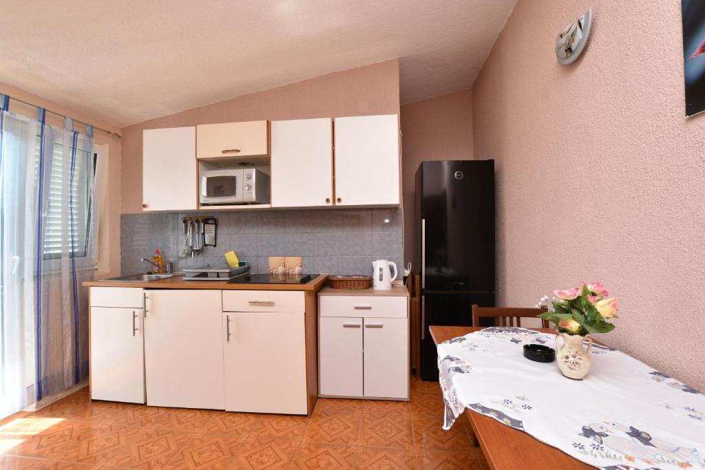 Vi boede i lejlighed A7 i 9 dage som par med et barn, og vi var meget begejstrede! Beliggenheden er perfekt – stranden ligger bogstaveligt talt få skridt fra lejligheden, og der er restauranter og alt hvad man behøver for en ubekymret ferie i nærheden. Lejligheden var fuldt udstyret, pæn og skinnende ren. Vi havde alt, hvad vi havde brug for til et behageligt ophold. Wi-Fi'en fungerede fantastisk, og udsigten fra terrassen er simpelthen fantastisk - et sandt lille paradis til afslapning! Fru Jurkić er en yderst venlig og imødekommende værtinde. Hun bød os velkommen med det samme, gav os nyttige råd om, hvad vi kunne besøge i området, og overraskede os endda med en gave ved vores afrejse, til både os og barnet, hvilket var særligt rørende. Vi anbefaler denne indkvartering til alle – familier, par og alle, der ønsker en fredelig og behagelig ferie ved havet. Vi kommer helt sikkert tilbage igen!