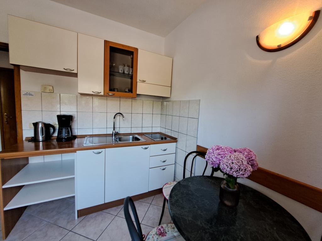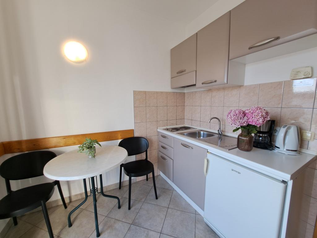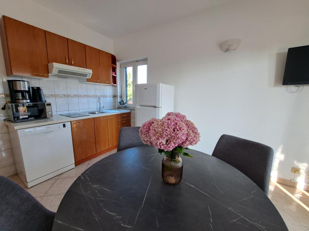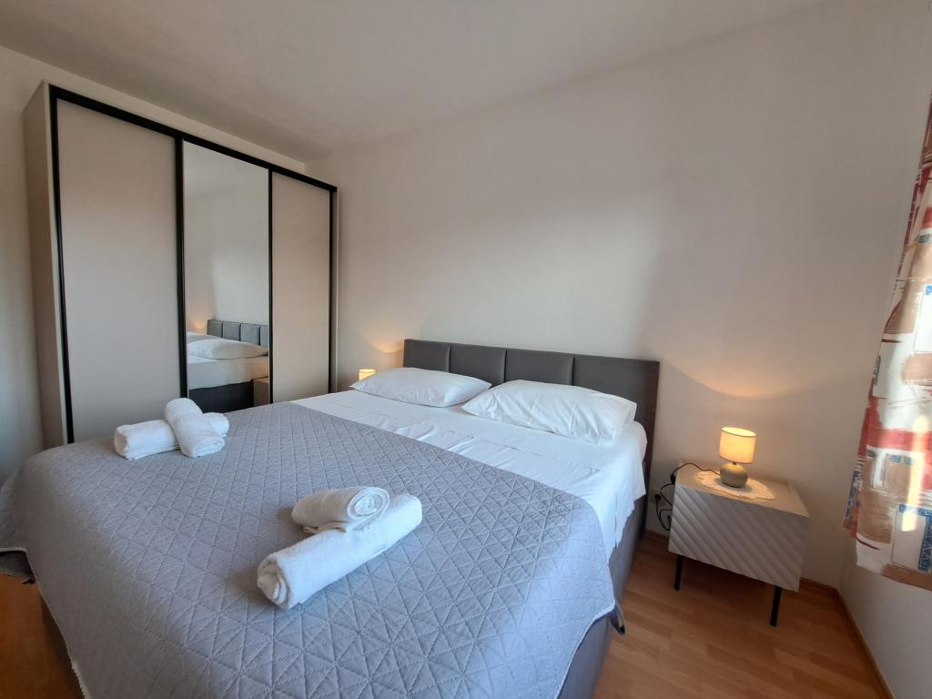 Ferielejligheder Carmen er placeret langs hovedvejen, omkring 150 meter fra stenstrand Velika Raduca. Til byens centrum kun 5 minutters gang. Huset har 6 lejligheder, alle pænt møbleret og udstyret med alt hvad du behøver for en dejlig ferie (aircondition, satellit-tv, internet, gratis parkering foran huset).