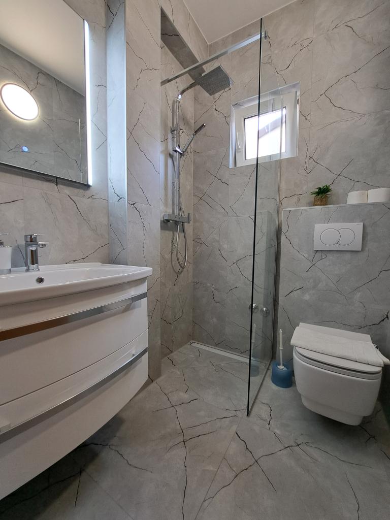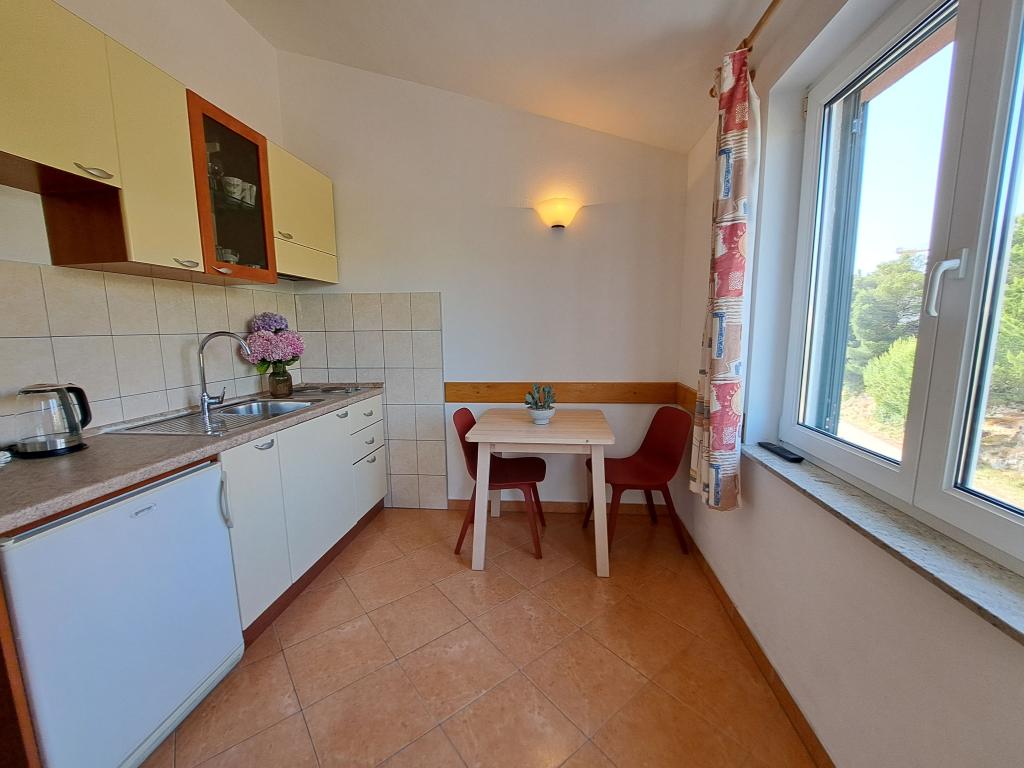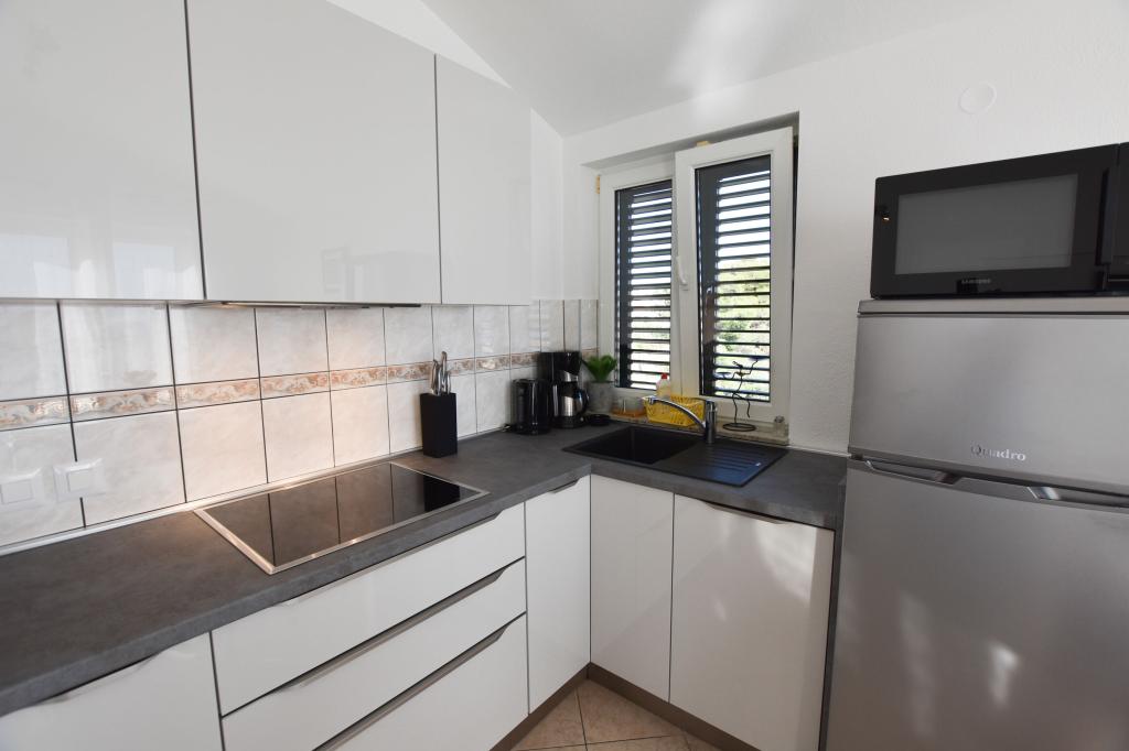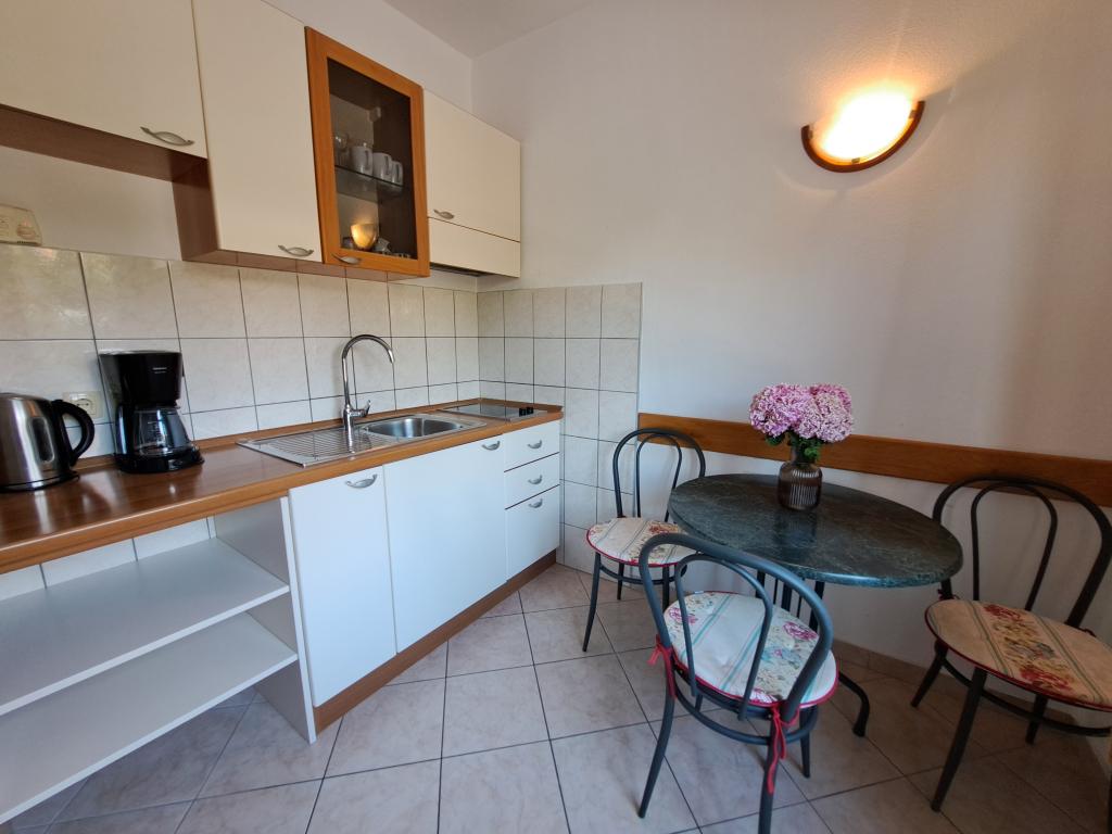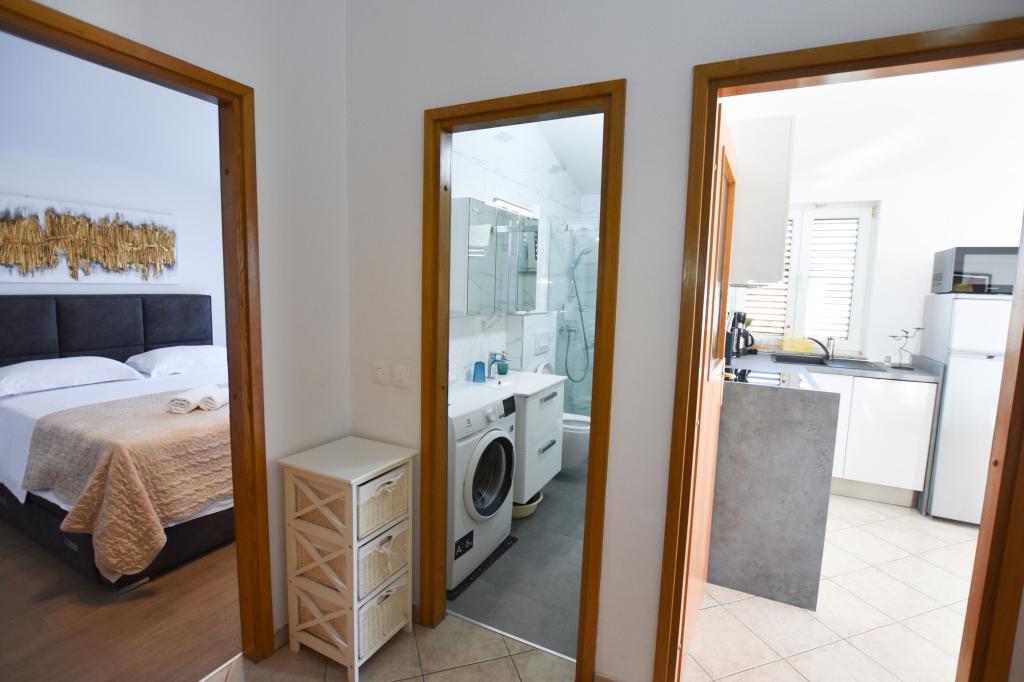 Ferielejligheder Carmen er placeret langs hovedvejen, omkring 150 meter fra stenstrand Velika Raduca. Til byens centrum kun 5 minutters gang. Huset har 6 lejligheder, alle pænt møbleret og udstyret med alt hvad du behøver for en dejlig ferie (aircondition, satellit-tv, internet, gratis parkering foran huset).