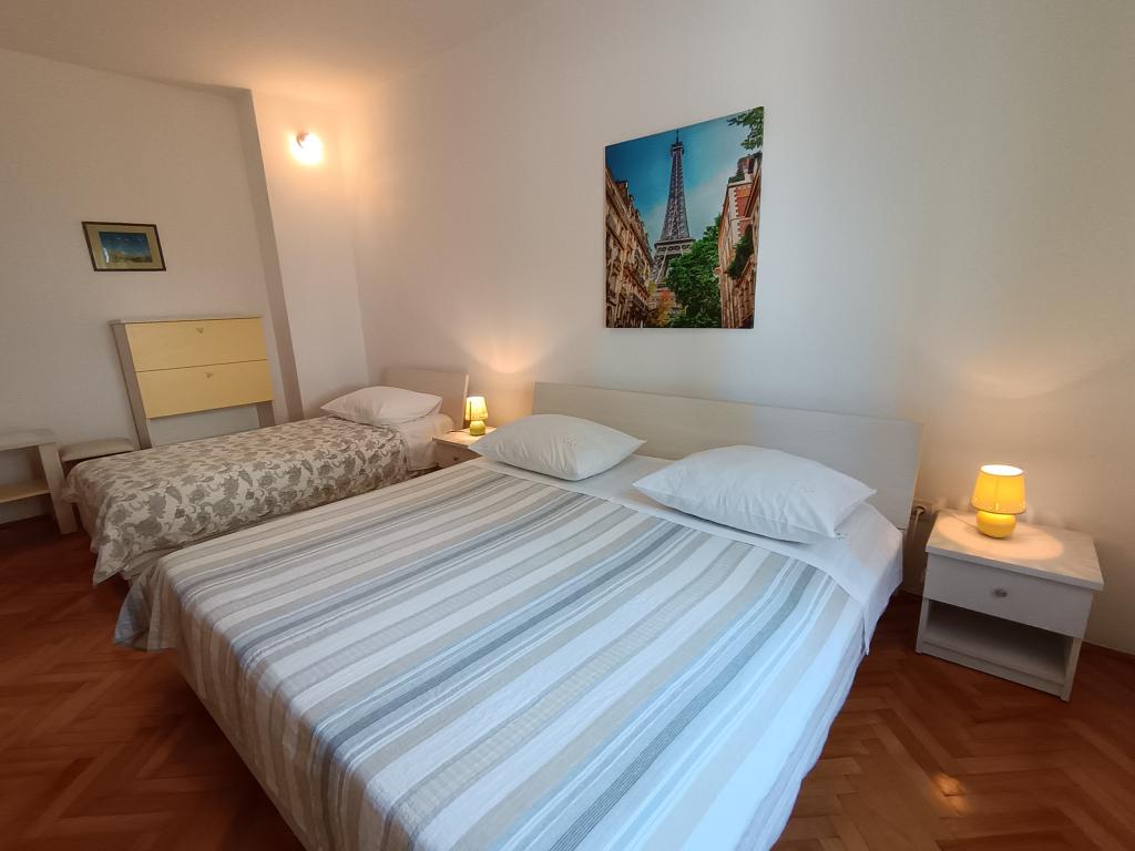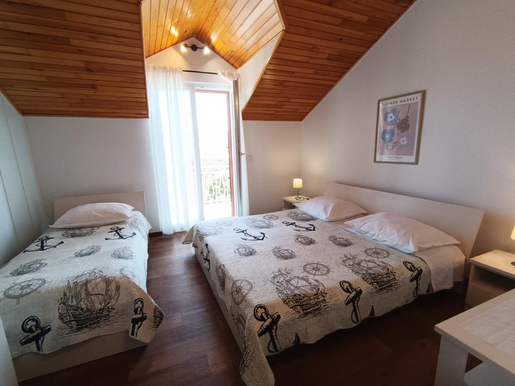 Anlægget indeholder to fuldt møblerede og udstyrede og klimatiserede lejligheder i den nye del af Primošten til indkvartering fra 4 til 8 personer. Lejlighed 6 plus 2 velegnet til fælles ferie for to familier. Lejligheden har to badeværelser med et rummeligt køkken, tre store soveværelser, en stor terrasse og en balkon med en smuk udsigt over havet og den gamle del af Primošten. Lejlighed 4 plus 1 er beliggende i stueetagen i et familiehus med separat indgang, den indeholder to værelser, et separat badeværelse og toilet, et køkken og en veranda til familieferier. Foran lejligheden er der opholdsstue og stor indhegnet gårdhave. Lejlighederne har sikret parkering foran huset. Det er 10 minutters gang til byens centrum og 5 minutters gang til den første strand. Kæledyr op til 5 kg er tilladt mod et ekstra gebyr på 10 eur/nat. Udover disse to lejligheder lejer vi et feriehus med swimmingpool KATE&MARE, som ligger i den dalmatiske Zagora i byen Vrgorac, og som også udbydes på Apartments Vrgoracs hjemmeside. Vi ser frem til din ankomst!