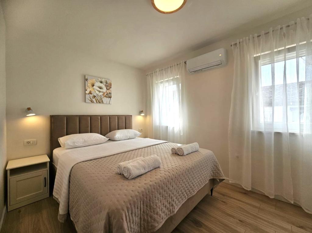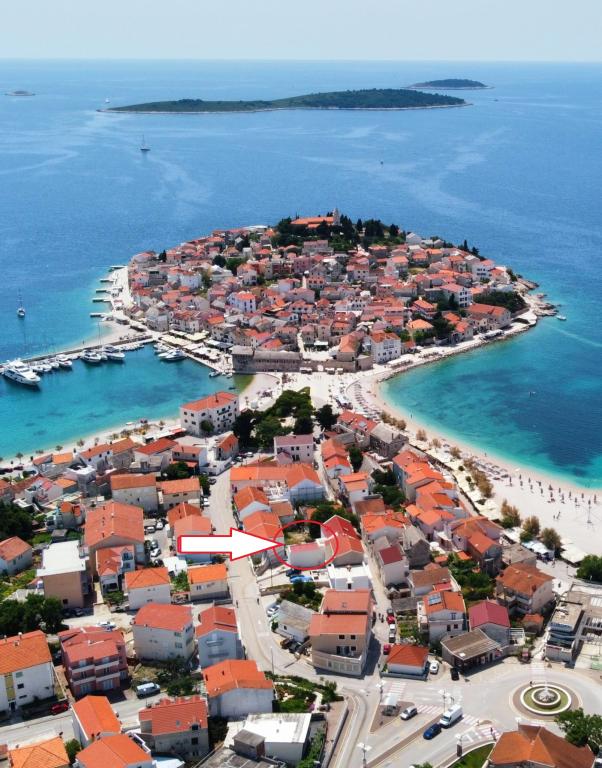 Den moderne to-etagers lejlighed Miamare i Primosten ligger 100 meter fra byens centrum og stranden (1-2 min gang) Den består af køkken, stue og toilet i stueetagen og to soveværelser og et badeværelse på den første. etage. Den er udstyret med tre klimaanlæg og en internetforbindelse. Der er gratis parkeringsplads foran lejligheden. Alle væsentlige faciliteter er placeret i umiddelbar nærhed i en afstand af mindre end 100 m (butik, apotek, marked, restauranter, slagter). , postkontor...).