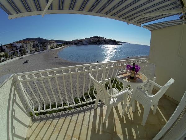 Apartments More er beliggende i centrum af Primošten. Lejlighederne ligger på Mala Raduča-stranden, første række til havet, og består af 8 boligenheder med forskellig kapacitet. I umiddelbar nærhed af lejligheden er der et hotelkompleks med tilhørende underholdningsfaciliteter, såsom tennisbaner, volleyballbaner og minigolf. Lejlighederne er omgivet af adskillige underholdningsfaciliteter, der egner sig til børn, og ligger i nærheden af forskellige caféer og restauranter. En butik, posthus, pengeautomater, vekselkontor og bank ligger alle inden for 100 meter fra lejlighedens beliggenhed. Du vil opleve atmosfæren af sommer, sjov og Middelhavet i vores lejligheder med hele dit væsen, akkompagneret af bølgernes sang og sommerbrisen. Familien Pancirov ser frem til din ankomst.