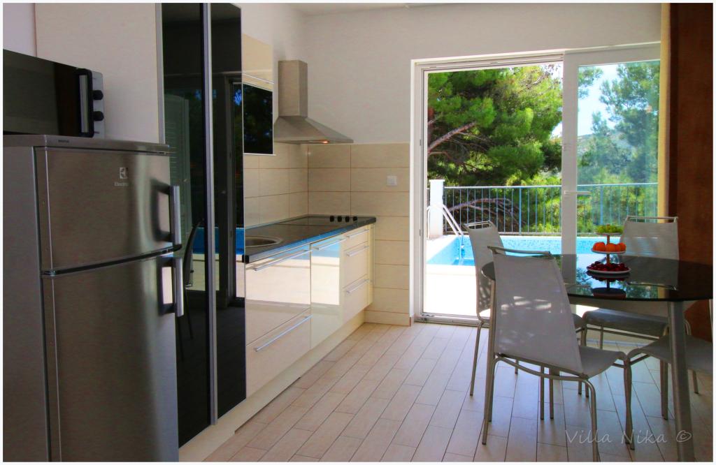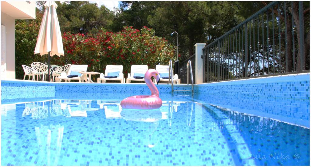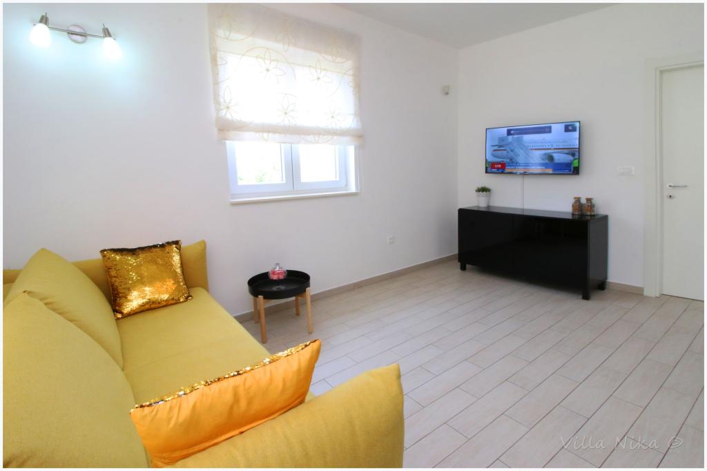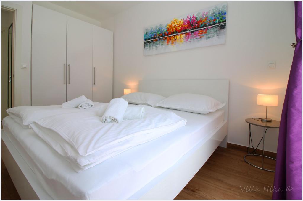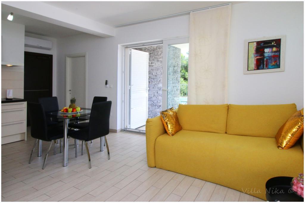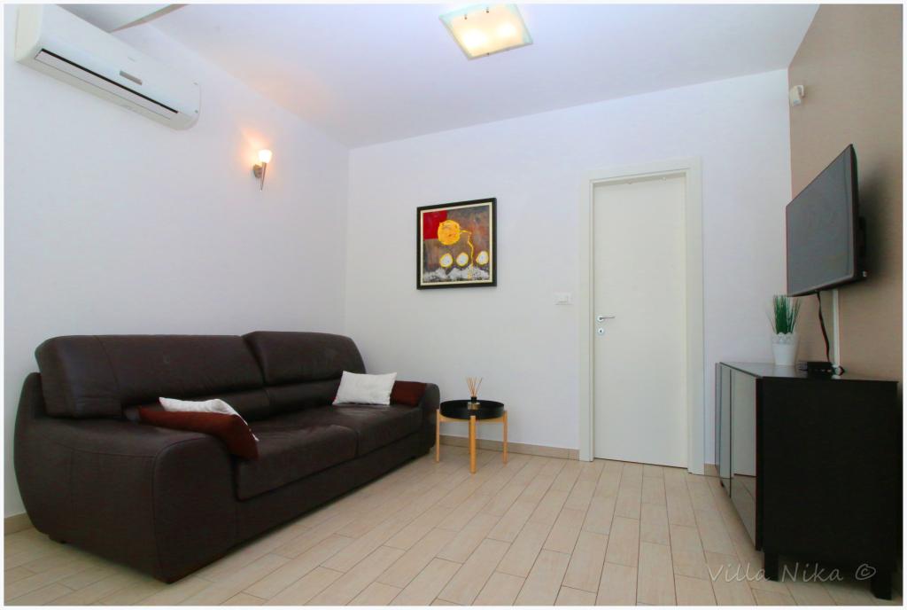 Komfortabel stueetage i et familiehus, som består af 2 separate lejligheder. Den ene lejlighed har 2 soveværelser og den anden med sovesofa i køkken/alrum. Hver lejlighed har sit eget fuldt udstyret køkken og et lækkert badeværelse med bruser. Lejlighederne har udgang til stor terrasse med swimmingpool, liggestole og udendørs brusere. Der er grill og parkeringsplads bag huset. Muligheden for at bruge garagen på forespørgsel, og små kæledyr på forespørgsel. Lejlighederne er moderne møblerede og udstyret med alle de nødvendige enheder til din ubekymrede ferie. Anlægget ligger 10 minutters gang fra stranden og centrum. Lejlighederne har aircondition, wi-fi, opvaskemaskine, mikroovn, kedel, kaffemaskine. I lobbyen er der et lille bibliotek, samt vaskemaskine og strygeudstyr. Det er muligt at leje lejlighederne samlet eller hver for sig.
