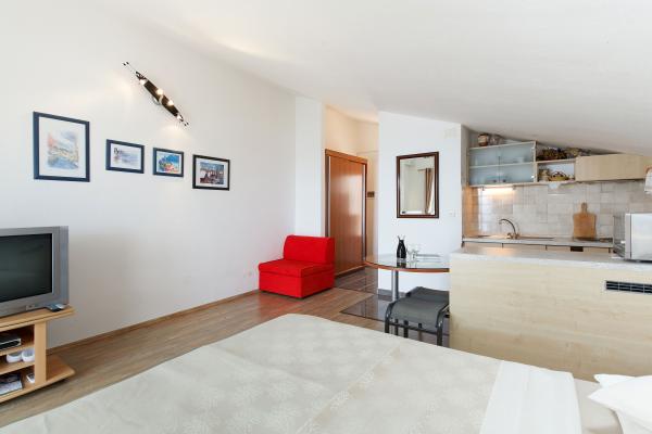 Elskede lejligheden med en stor balkon og smuk udsigt over havet. Lejligheden var meget ren, alt fungerede, det nødvendige sæt retter, et fladt tv, en behagelig værtinde. Tæt på centrum er strandene enorme og den meget hyggelige by Primosten. Kun lejligheder på bjerget, dette skal tages i betragtning. Tak for resten!