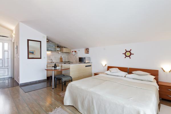 Turistskat er inkluderet i prisen.Vi anbefaler stærkt Salopek lejlighederne!!! Værelser rene, pænt dekoreret. Køkkenet er udstyret med alle nødvendige apparater. Stor, rummelig terrasse med en smuk have og udsigt over Adriaterhavet, hvortil det tog 10 minutter. Og selvfølgelig er ejeren en venlig, hjælpsom og munter fru Marija med sin fantastiske hund Loui. Vi havde en fantastisk ferie og vil helt sikkert vende tilbage