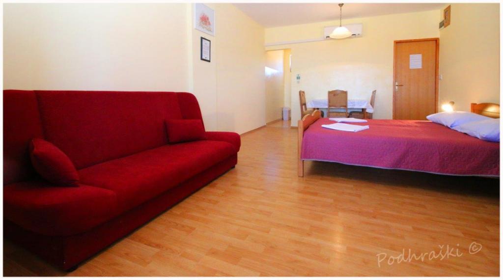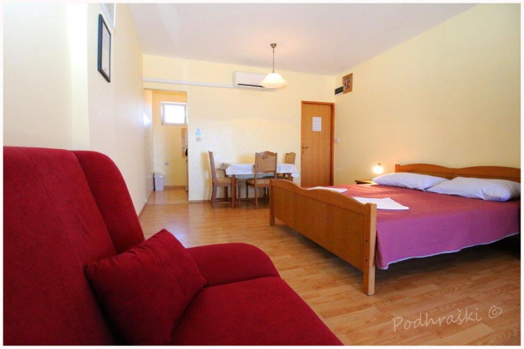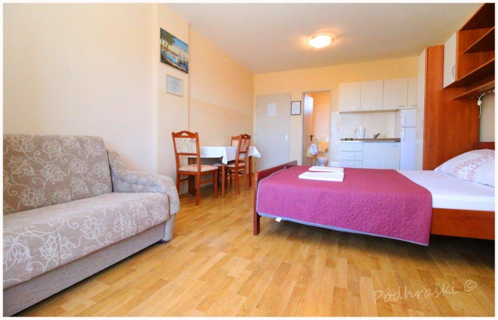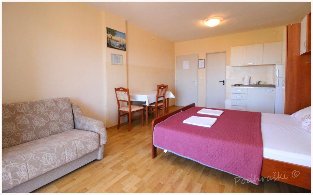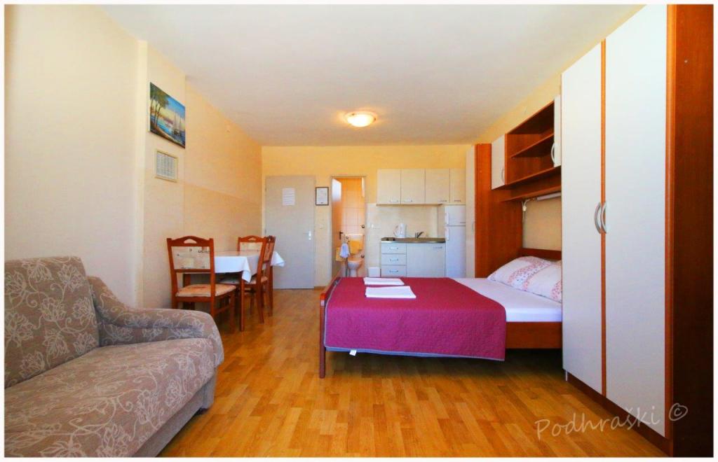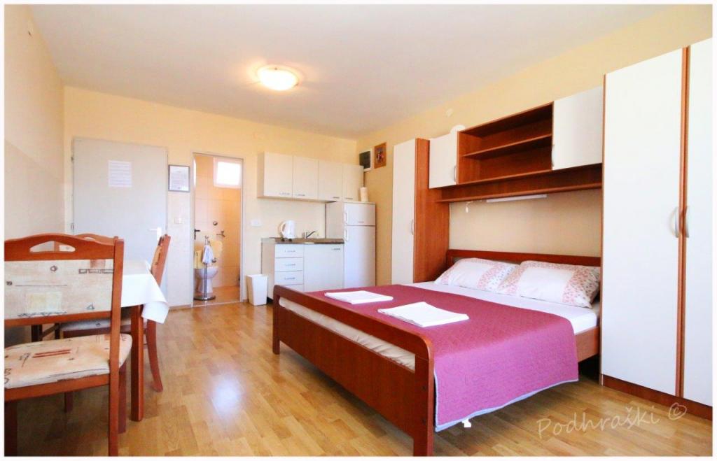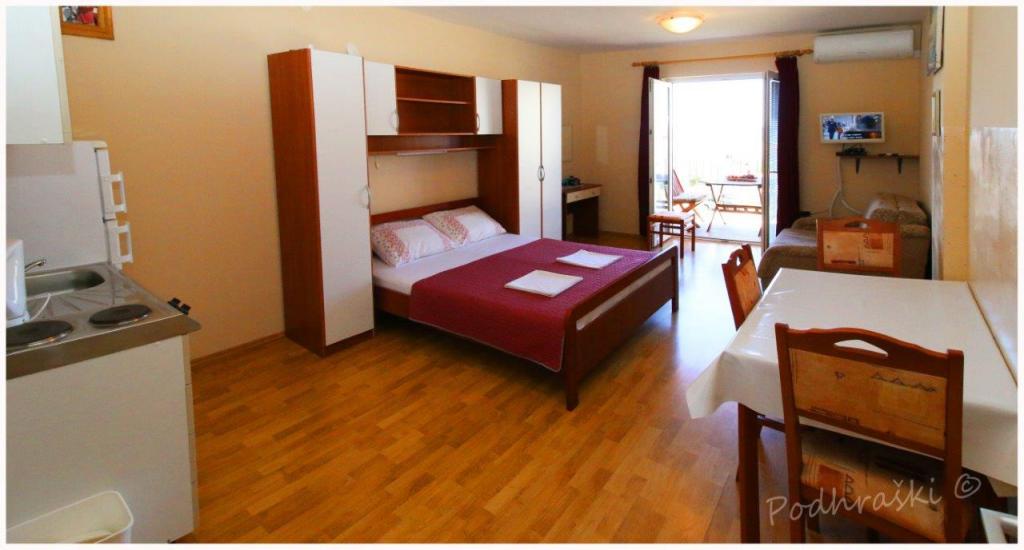 Læs mere IndkvarteringsenhederLej 4 studio lejligheder i Primosten i en rolig beliggenhed, 4min gang fra det centrale torv, 2-3 min gang fra stranden. Strandene er sandet med fyrreskove. Kapacitet 2 voksne og 2 børn pr lejlighed Lejlighederne er nye, med nye møbler og er placeret i det nye hus. Prisen inkluderer overdækket parkeringsplads, brug af gården, klimaanlæg og grill, samt lokale skatter. Hver lejlighed har internet (WiFi), køleskab, LCD-tv, aircondition, dobbeltseng, sovesofa, badeværelse, køkken, balkon, etc ...