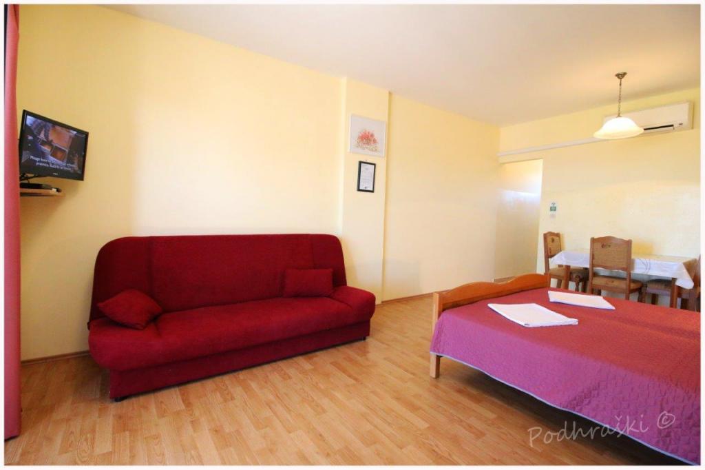 Turistskat er inkluderet i prisen.Lej 4 studio lejligheder i Primosten i en rolig beliggenhed, 4min gang fra det centrale torv, 2-3 min gang fra stranden. Strandene er sandet med fyrreskove. Kapacitet 2 voksne og 2 børn pr lejlighed Lejlighederne er nye, med nye møbler og er placeret i det nye hus. Prisen inkluderer overdækket parkeringsplads, brug af gården, klimaanlæg og grill, samt lokale skatter. Hver lejlighed har internet (WiFi), køleskab, LCD-tv, aircondition, dobbeltseng, sovesofa, badeværelse, køkken, balkon, etc ...