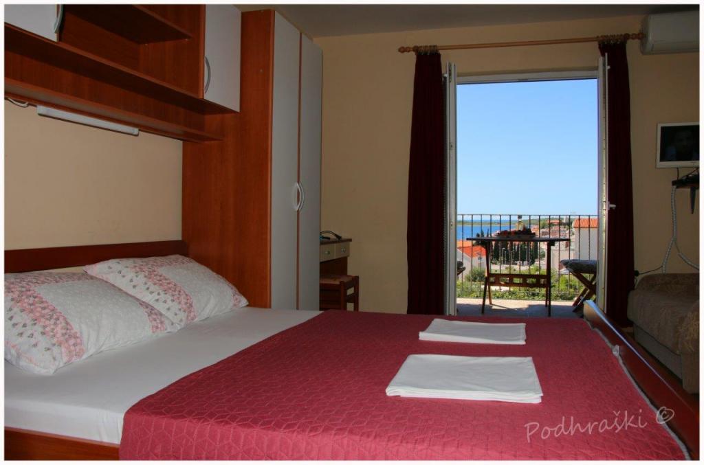 Lej 4 studio lejligheder i Primosten i en rolig beliggenhed, 4min gang fra det centrale torv, 2-3 min gang fra stranden. Strandene er sandet med fyrreskove. Kapacitet 2 voksne og 2 børn under per lejlighed Lejlighederne er nye, med nye møbler og er placeret i det nye hus. Prisen inkluderer en parkeringsplads, brug af gården, klimaanlæg og grill, samt lokale skatter. Hver lejlighed har internet (WiFi), køleskab, LCD-tv, aircondition, dobbeltseng, sovesofa, badeværelse, køkken, balkon, etc ...
