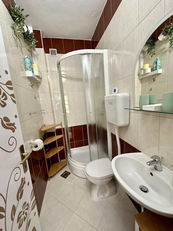 Apartments -VESNA ligger i Primošten, 2 minutters gang fra Velika Raduča Strand, og tilbyder indkvartering med have, gratis privat parkering og terrasse. Denne 3-stjernede private indkvartering blev bygget i 1987 og ligger inden for 5 minutters gang fra attraktioner og stranden. . Samtlige værelser har balkon med udsigt til haven. Samtlige værelser på Apartments - VESNA har aircondition, opholdsområde, fladskærms-tv med satellitkanaler, køkken, spiseplads samt eget badeværelse med hårtørrer og bruser. Samtlige gæster har gratis WiFi og eget badeværelse, og nogle af værelserne har også dvd-afspiller. På Apartments -VESNA har alle værelser sengelinned og håndklæder. Kornati Nationalpark ligger 45 km fra Apartments - Rooms VESNA, og Solaris Aquapark ligger 24 km fra ejendommen.