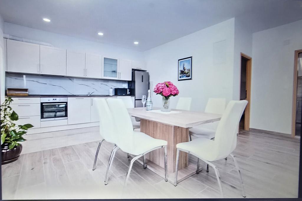 Nyindrettet, fuldt udstyret lejlighed med køkken, stue, to soveværelser og to badeværelser. Begge værelser er udstyret med en dobbeltseng, et af værelserne har et separat toilet, og stuen har en ekstra seng (sovesofa). Badeværelset har bruser og vaskemaskine. Lejligheden ligger på 1. sal i huset, som har en 10 m2 overdækket terrasse, som er delvist overdækket. Lejligheden har 2 parkeringspladser. De omkringliggende strande er sandede og lavvandede, velegnede til små børn. Vi er beliggende i den lille by Privlaka nær Zadar. Lejligheden ligger 3 minutters gang fra stranden og nær Privlakas centrum (10 minutters gang) og strandpromenaden, der løber gennem hele byen. I nærheden ligger byerne Nin og Zadar. Vi ser frem til din ankomst.
