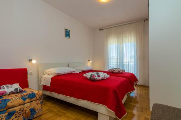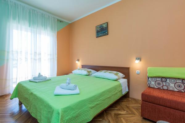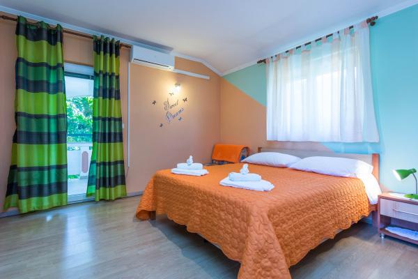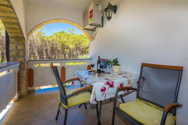 Fuldt udstyrede lejligheder i et roligt område af Privlaka, beliggende 300 m fra havet, med en stor gårdhave. Lejlighederne har to store soveværelser, badeværelse, køkken, stor terrasse og altan. Foran huset ligger en fyrreskov tæt på busstationen.